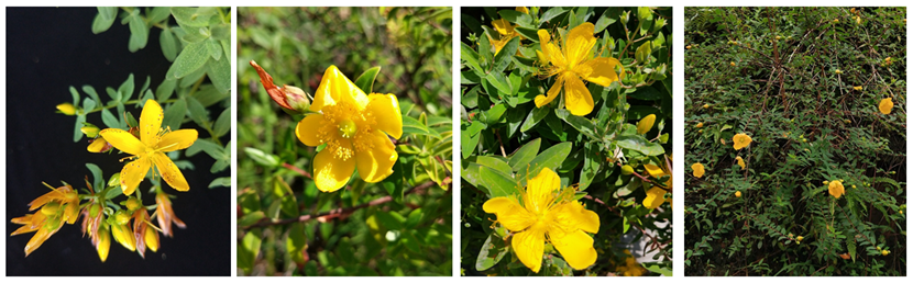 A.貫葉連翹,B.短柱金絲桃,C.美麗金絲桃,D.北栽秧花