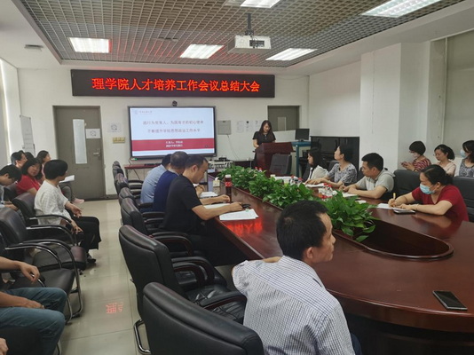 新聞網訊 6月25日,為深入學習習近平總書記關于教育工作、民族工作的重要論述和全國教育大會精神,全面貫徹落實學校人才培養工作精神,緊緊圍繞立德樹人根本任務,進一步鑄牢中華民族共同體意識,構建“三全育人”工作新格局,持續深化教育教學改革,全面提升學院人才培養質量和思想政治教育工作水平,理學院召開人才培養工作會議。黨委常委、副校長宋敏出席會議,教務處副處長吳桂群,研究生院副院長趙英男,理學院領導班子成員、系主任、導師組組長等與會人員參加會議,學院院長陳根祥主持會議。