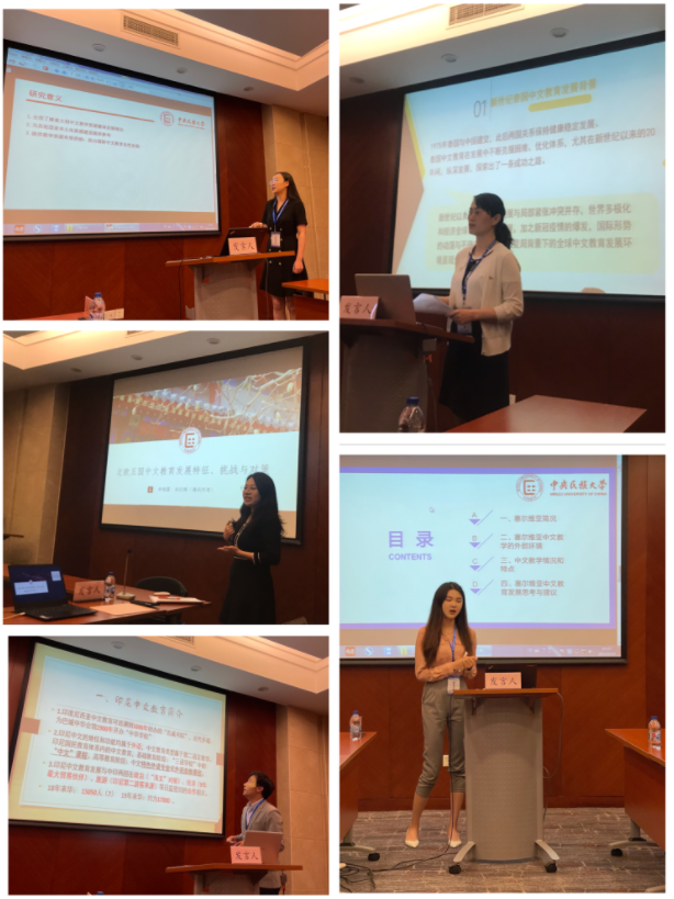 我校國際教育學(xué)院副教授田艷受邀主持了“孔院與文化傳播”分論壇的報(bào)告,對本論壇專家學(xué)者的報(bào)告進(jìn)行了點(diǎn)評,并組織本論壇專家學(xué)者進(jìn)行了熱烈的討論和交流。在“國際中文教育研究”小組論壇中,我校國際教育學(xué)院博士研究生龔漫、高偉、雷歌、劉帥奇、張婧、王睿昕分別就意大利、保加利亞、塞爾維亞、印度尼西亞、泰國和馬來西亞的中文教育及教學(xué)資源發(fā)展情況作了報(bào)告。在“學(xué)科建設(shè)與教學(xué)”小組報(bào)告中,我校國際教育學(xué)院博士研究生李曉露分析了北歐五國中文教育發(fā)展的動(dòng)因和特征。在“孔院與文化傳播”論壇報(bào)告中,博士生劉晶晶匯報(bào)了《世界主要語言機(jī)構(gòu)教學(xué)資源本土化發(fā)展比較與思考》。我校國際教育學(xué)院博士生谷甲斌基于實(shí)證研究,分析了孔子學(xué)院文化活動(dòng)的現(xiàn)狀、問題與對策。我校國際教育學(xué)院碩士研究生張清以微課作品《我心中的英雄》為例,討論了文化語境理論在漢語語法微課中的應(yīng)用。我校國際教育學(xué)院碩博士研究生們有關(guān)國際中文教育國別化研究的報(bào)告獲得了與會專家的高度關(guān)注與認(rèn)可,獲得了學(xué)者們的熱烈討論。