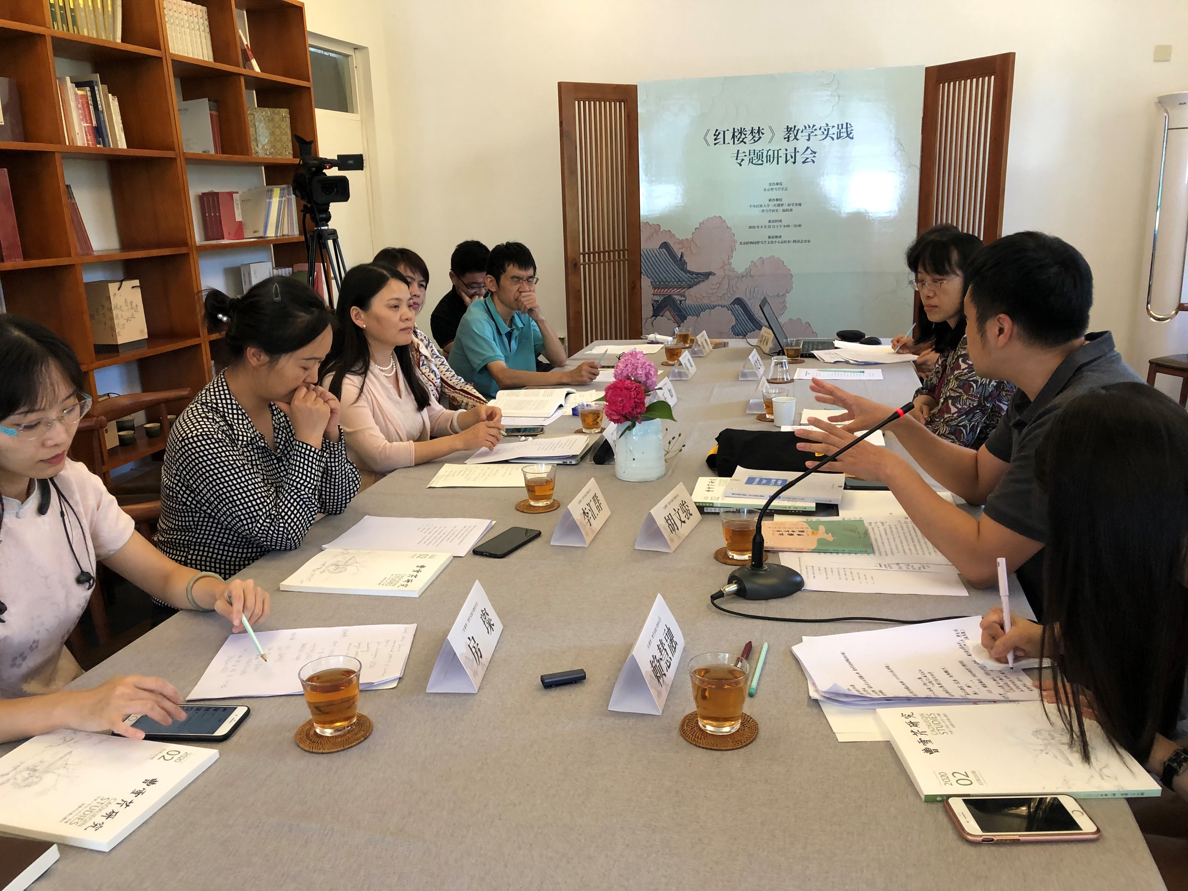 新聞網訊 8月25日,《紅樓夢》教學實踐專題研討會在北京植物園曹雪芹文化中心品紅軒召開。此次會議由北京曹雪芹學會主辦,我校《紅樓夢》研學基地、《曹雪芹研究》編輯部承辦。我校文學院古代文學專業曹立波、葉楚炎老師,以及三位紅學選題的研究生參加了研討。
