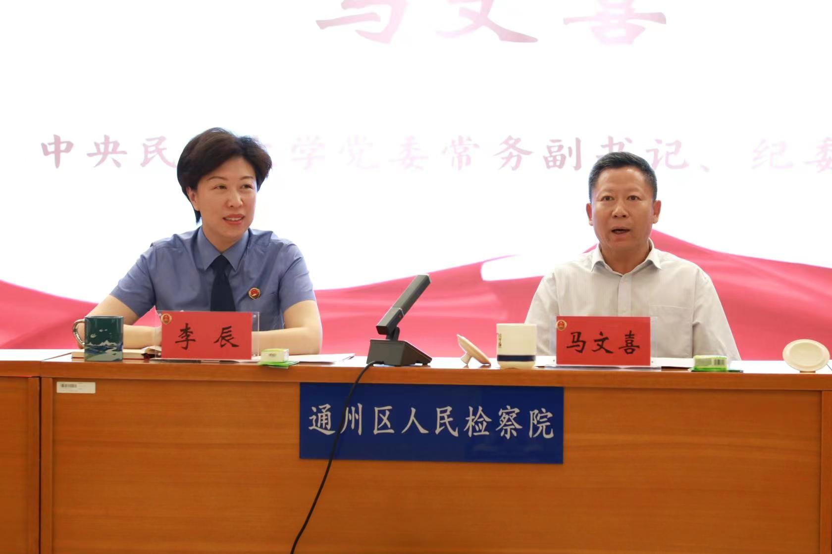 李辰對馬文喜一行的到來表示熱烈歡迎。她指出,本次檢校共建應發展之需,開發展新局,將有力推動雙方優勢互補、良性互動、共建共贏,助力破解城市副中心行政檢察工作高質量發展課題,為通州檢察院檢察理論研究工作提供強大智力支撐,推動檢察工作與法學教育工作再上新臺階。