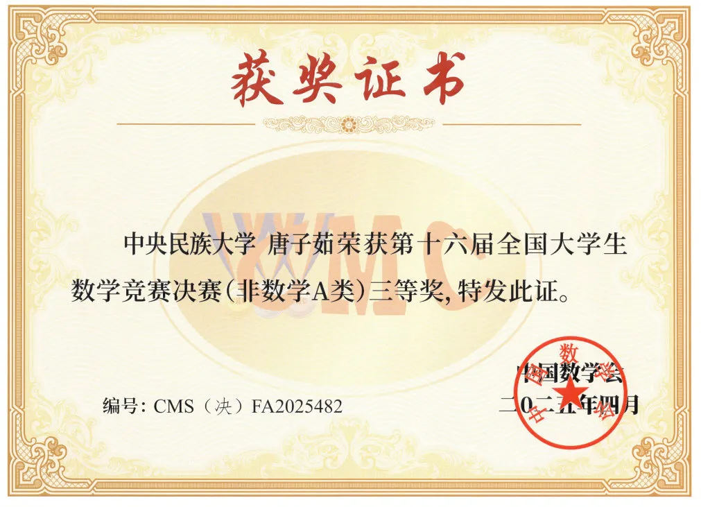 新聞網(wǎng)訊 第十六屆全國大學生數(shù)學競賽決賽于浙江師范大學落下帷幕。我校信息工程學院2021級通信工程專業(yè)李書杰同學(指導教師蘇傲雪)獲得全國二等獎,理學院2022級統(tǒng)計學專業(yè)唐子茹(指導教師蔡果蘭)獲得全國三等獎。北京賽區(qū)共計41人獲決賽全國獎(非數(shù)學A類),其中全國一等獎13人,全國二等獎15人,全國三等獎13人。