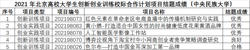 新聞網訊 日前,2021年度北京高校大學生創新創業訓練校際合作計劃項目結果公布。我校共申報立項項目5項,均已通過結項考核,其中3項獲評優秀。
