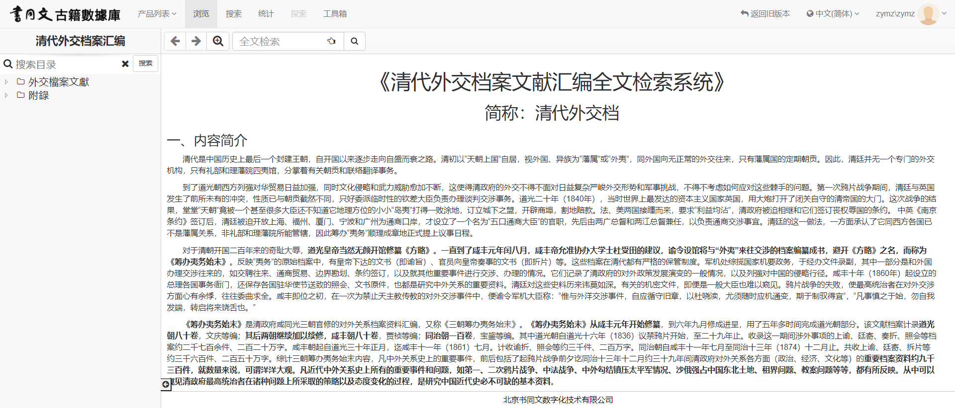 “清代外交檔案文獻(xiàn)匯編全文檢索系統(tǒng)”數(shù)據(jù)庫收錄的文獻(xiàn)朝代跨度為道光、咸豐、同治、光緒、宣統(tǒng)五朝。