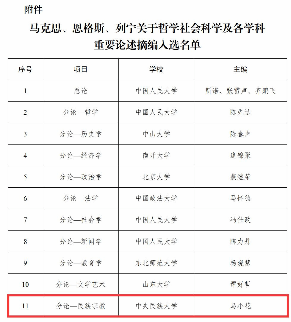 新聞網(wǎng)訊 近日,教育部發(fā)布《國(guó)家教材委員會(huì)辦公室關(guān)于開展馬克思、恩格斯、列寧關(guān)于哲學(xué)社會(huì)科學(xué)及各學(xué)科重要論述摘編申報(bào)工作的通知》(國(guó)教材辦〔2021〕2號(hào))。根據(jù)通知,我校烏小花教授主編的項(xiàng)目《分論—民族宗教》入選馬克思、恩格斯、列寧關(guān)于哲學(xué)社會(huì)科學(xué)及各學(xué)科重要論述摘編(以下簡(jiǎn)稱“論述摘編”)入選名單。