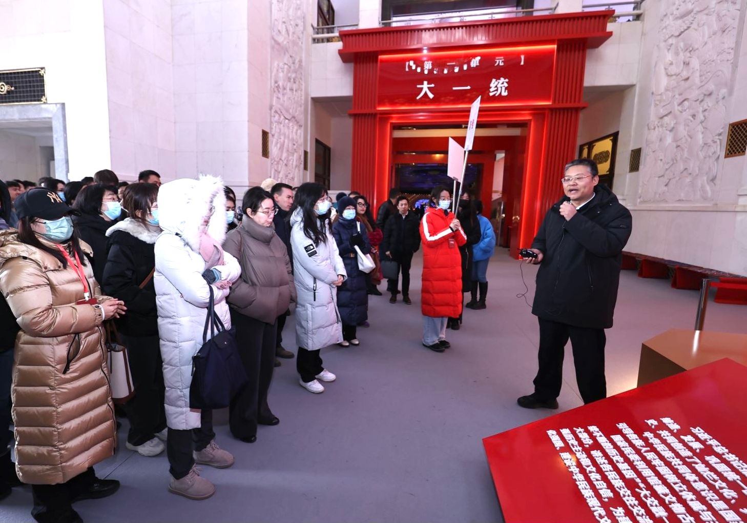 開班式結束后,全體學員赴鑄牢中華民族共同體意識文物古籍展開展參觀學習,民族文化宮黨委書記、主任任毅和文化宮講解團隊在展覽現場進行現場教學輔導,讓學員們從“大一統”“大交融”“大團結”三個展覽板塊,更加直觀、生動地體悟中華文明根脈,深入了解中華民族交往交流交融的歷史,深刻感受新時代黨的民族工作取得的歷史性成就。