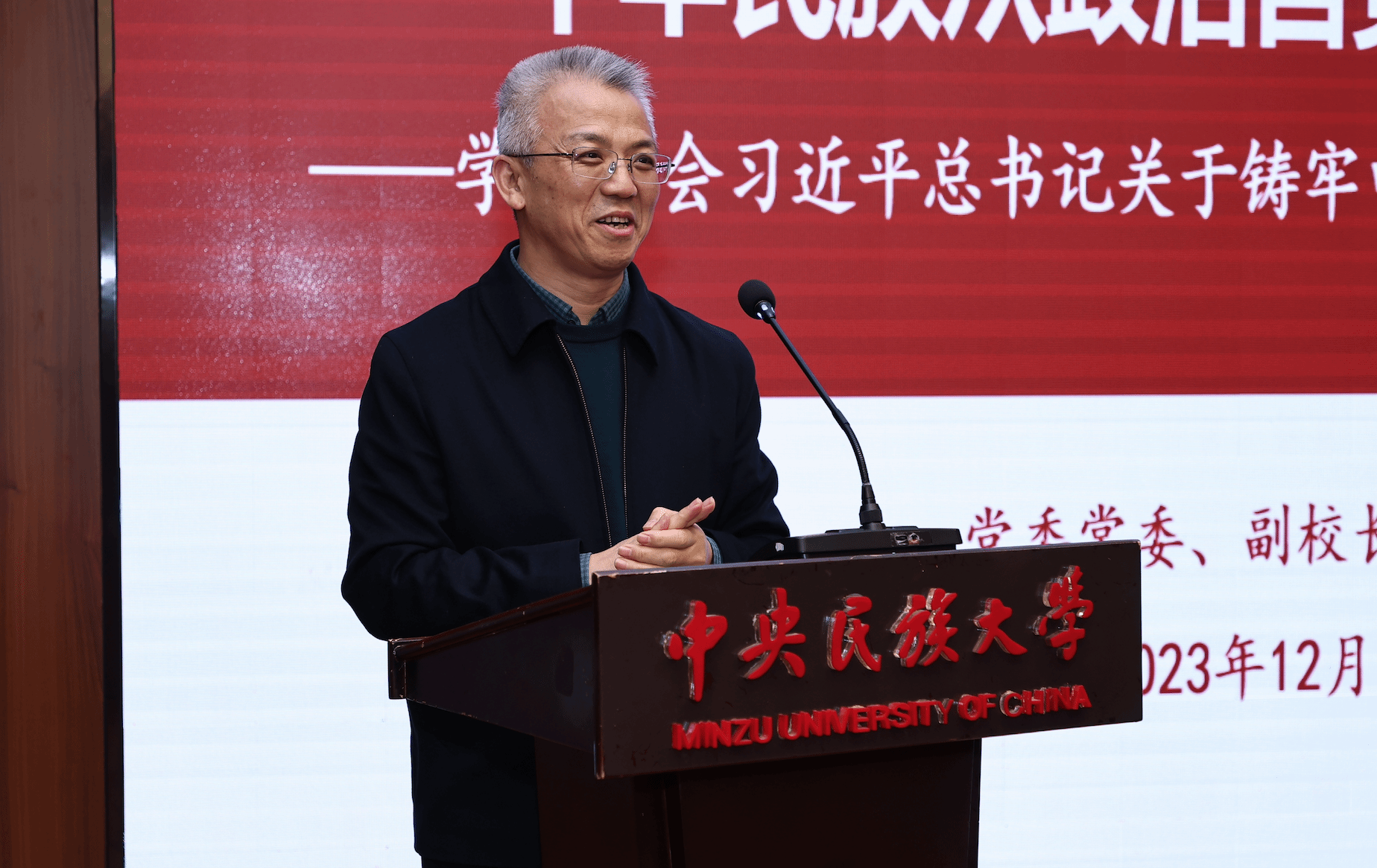中央民族大學黨委常委、副校長強世功圍繞中華民族從政治自覺邁向文明自覺、新時代青年的職責使命深入闡述學習領會習近平總書記關于鑄牢中華民族共同體意識的重要思想。