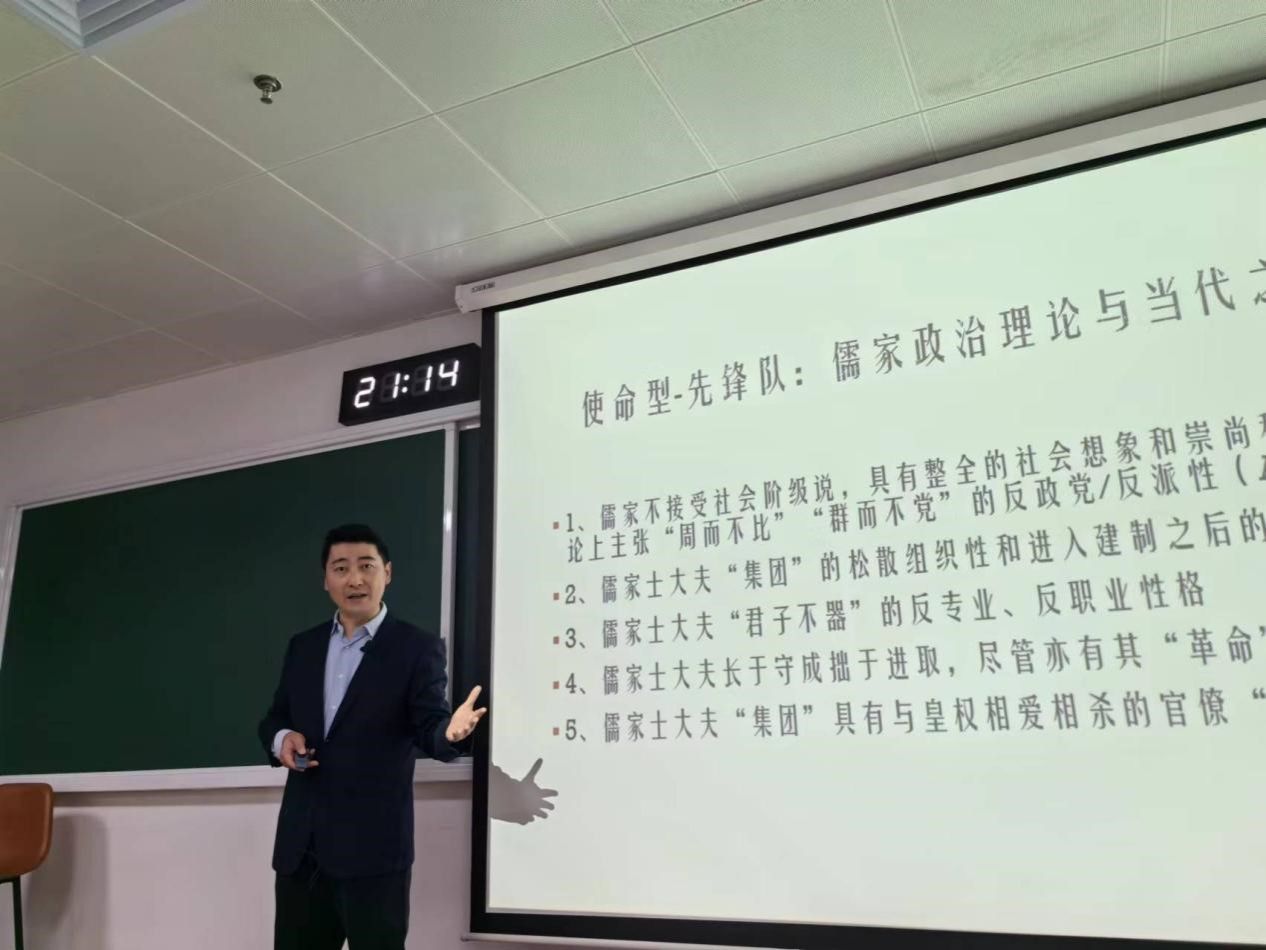 孔新峰借用溝口雄三“以中國為方法”的視角,強調應當立足本土經驗、構建本土理論,提升作為現代社會科學核心概念的“國家”“民族”及“政黨”的“含中量”。講座主體部分圍繞“中華民族先鋒隊的政黨哲學淵源”“中華民族先鋒隊的政黨哲學原理”兩大主題展開,探討了中華民族先鋒隊的政治哲學淵源,揭示了以“先鋒隊政黨建設”引領“中華現代國家建設”與“中華民族共同體建設”的內在機理。