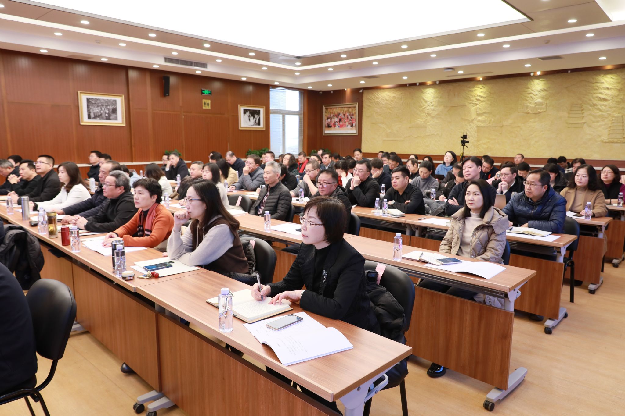 全體在校校領導,校長助理,各部門、各單位主要負責人在主會場知行堂參會,職能部門和校屬單位副處級、科級(主任)干部、各民主黨派主委及負責人在文華樓報告廳分會場,本單位副處級干部、組織員、科長(主任)、教師黨支部書記、系(教研室)主任、教授委員會成員在各學院會議室分會場,其他教職工在線上終端參會。