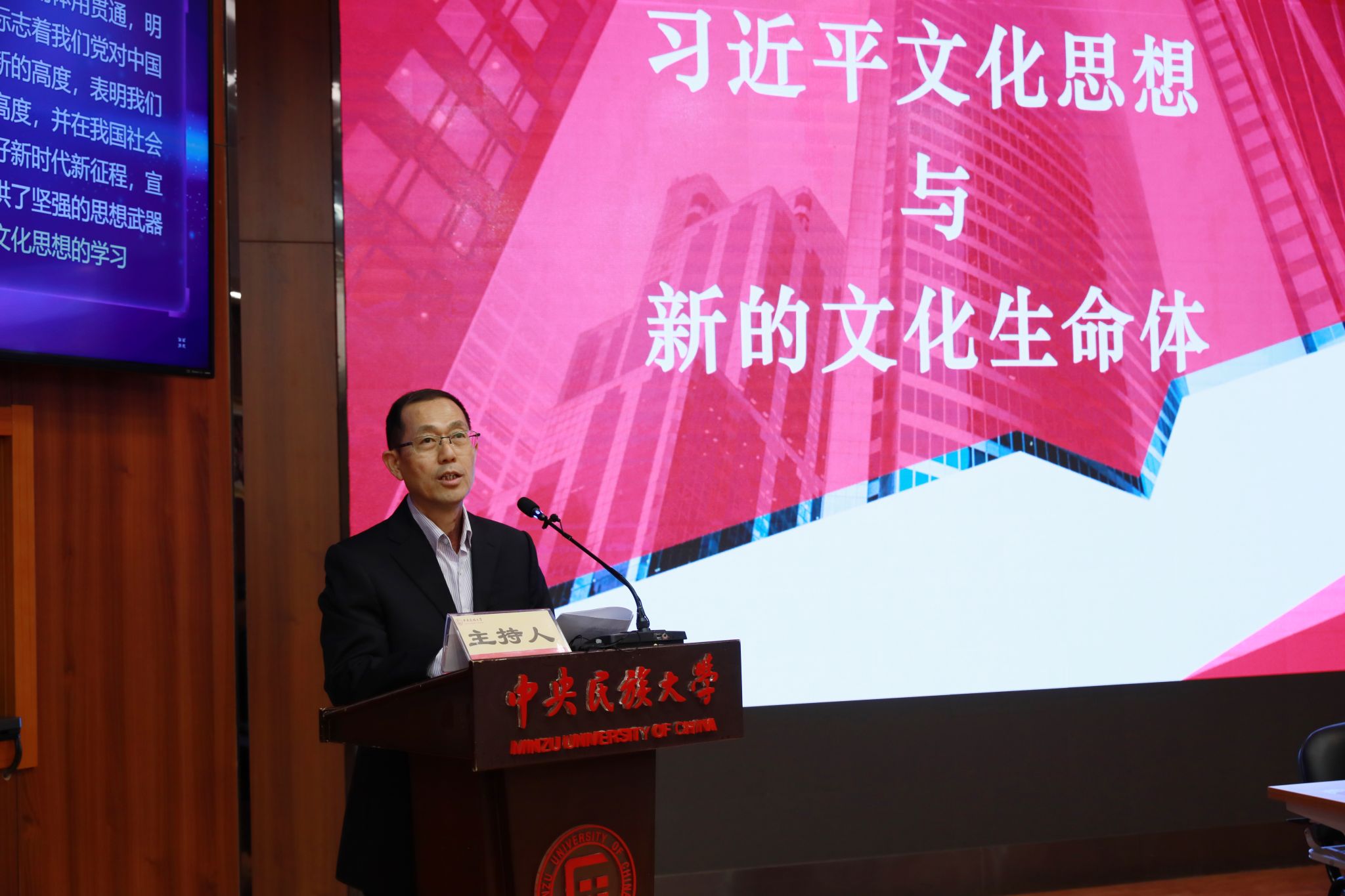 鄒吉忠在主持講話時指出,學習貫徹習近平文化思想、建設中華民族現代文明,既是我們新時代新的文化使命,也是中央民族大學自誕生時起就肩負的歷史使命,更是中央民族大學新時代必須堅守和勇擔的使命任務,這就是要緊緊圍繞鑄牢中華民族共同體意識主線,努力走在新時代文化傳承發展與文化強國建設的最前列,走在學習宣傳的前列,走在研究闡釋的前列,走在推進“三進”工作的前列,走在構筑中華民族共有精神家園的前列。
