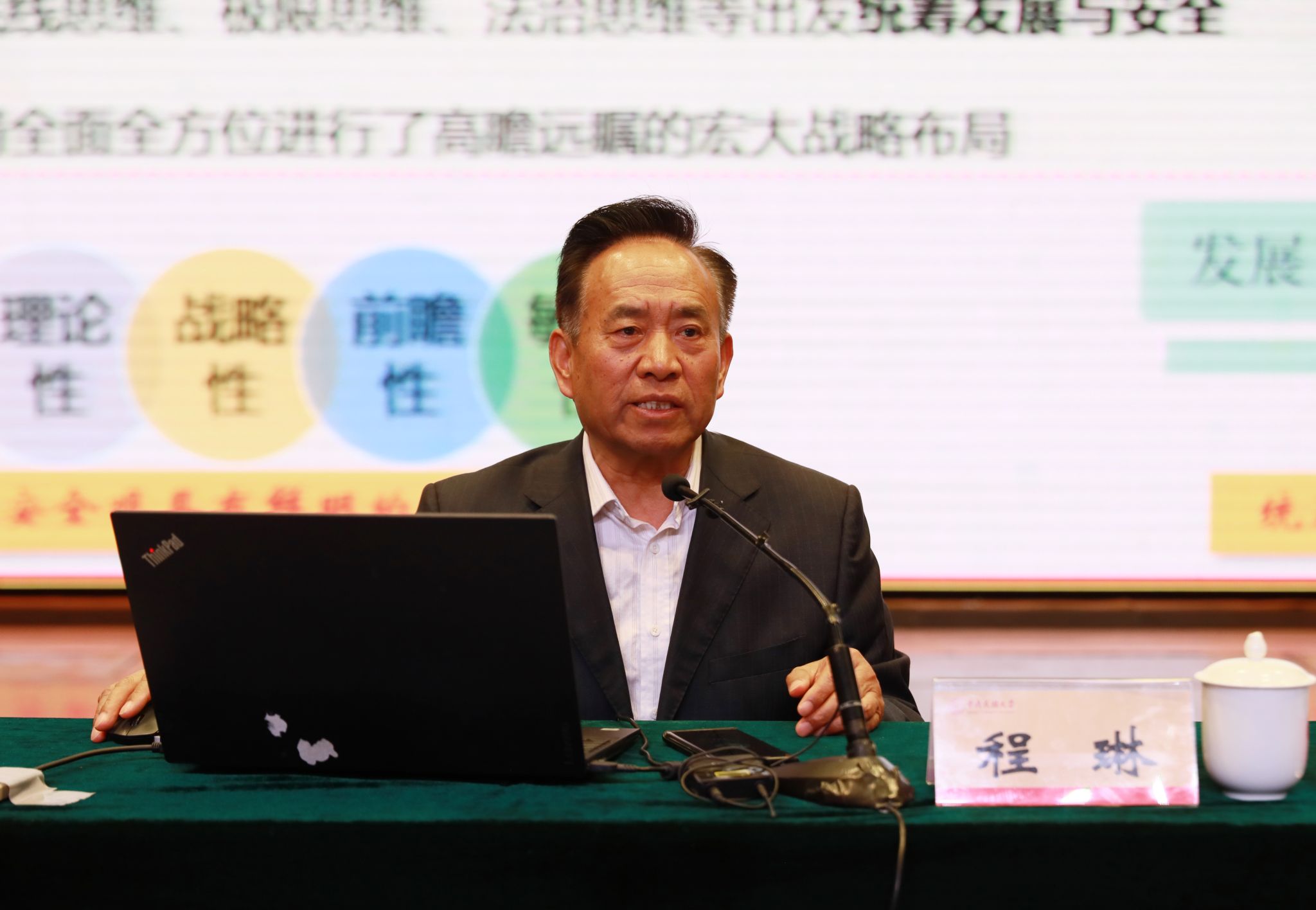 程琳以“以總體國家安全觀為指導 切實增強維護國家安全的思想意識”為題,圍繞“總體國家安全觀”系統梳理了總體國家安全觀十年來的發展脈絡和建設成績,闡述分析了以人民安全為宗旨的國家安全的深刻內涵。