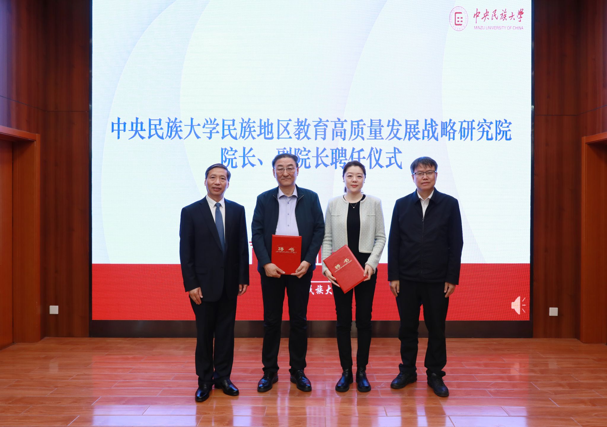 成立大會上,李學鋒、朱瑞、郭廣生、石亞洲以及教育學院教授蘇德共同為“中央民族大學民族地區教育高質量發展戰略研究院”揭牌。聘任蘇德擔任研究院院長,耿澤博士擔任研究院副院長。