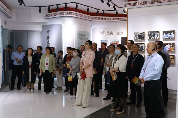各高校統戰部部長來到學校民族博物館,參觀了《中央民族大學校史展》《先生還在身邊——民大名師紀念展》及鑄牢中華民族共同體意識系列展之《衣無語,繹大千——中華民族袍、衣、裙、褲展》《大地回聲——中國各民族樂器文化展》等專題展,全面了解了我校的歷史沿革、辦學定位、鑄牢中華民族共同體意識建設、教育教學成果、人才培養等情況。