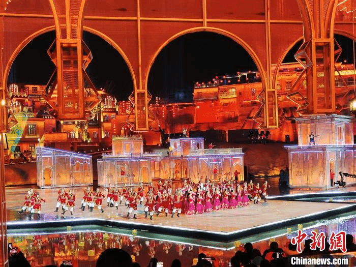 ▲總臺春晚喀什分會場《舞樂新疆》節目現場。(圖片來源:中新網 董曉 攝)