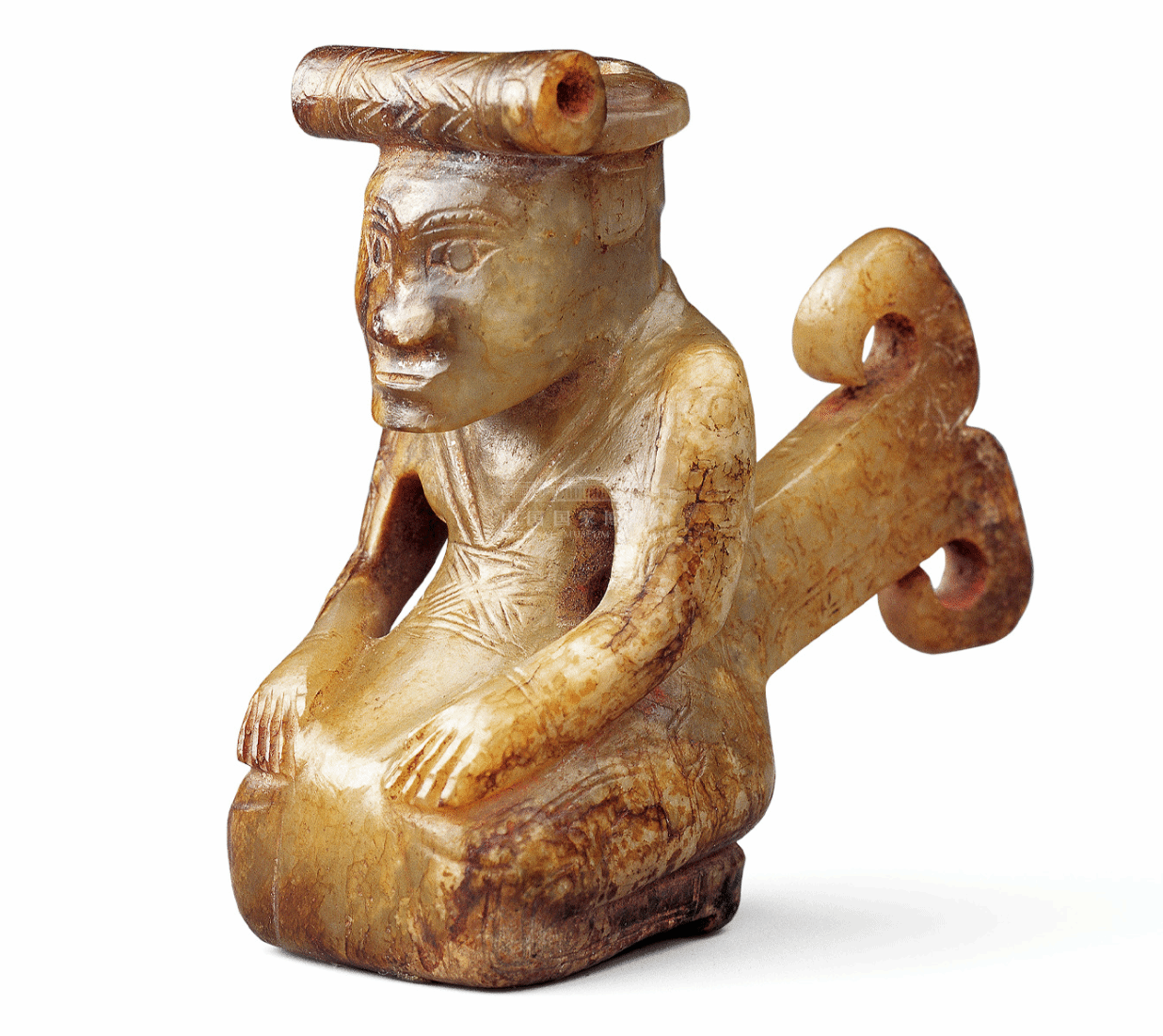 1976年,河南安陽殷墟的婦好墓中,出土了來自昆侖山的和田玉,將中原與新疆交往的歷史推至3000多年前;陜西西安姜寨遺址出土的一件青白玉三角飾,被認為是最早出現在中原的和田玉文物,距今約6300-6700年。