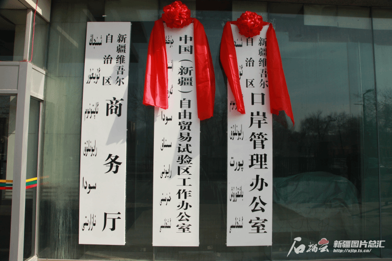 ▲2024年3月22日,“中國(新疆)自由貿易試驗區工作辦公室”“新疆維吾爾自治區口岸管理辦公室”同時揭牌成立。(圖片來源:新疆日報)