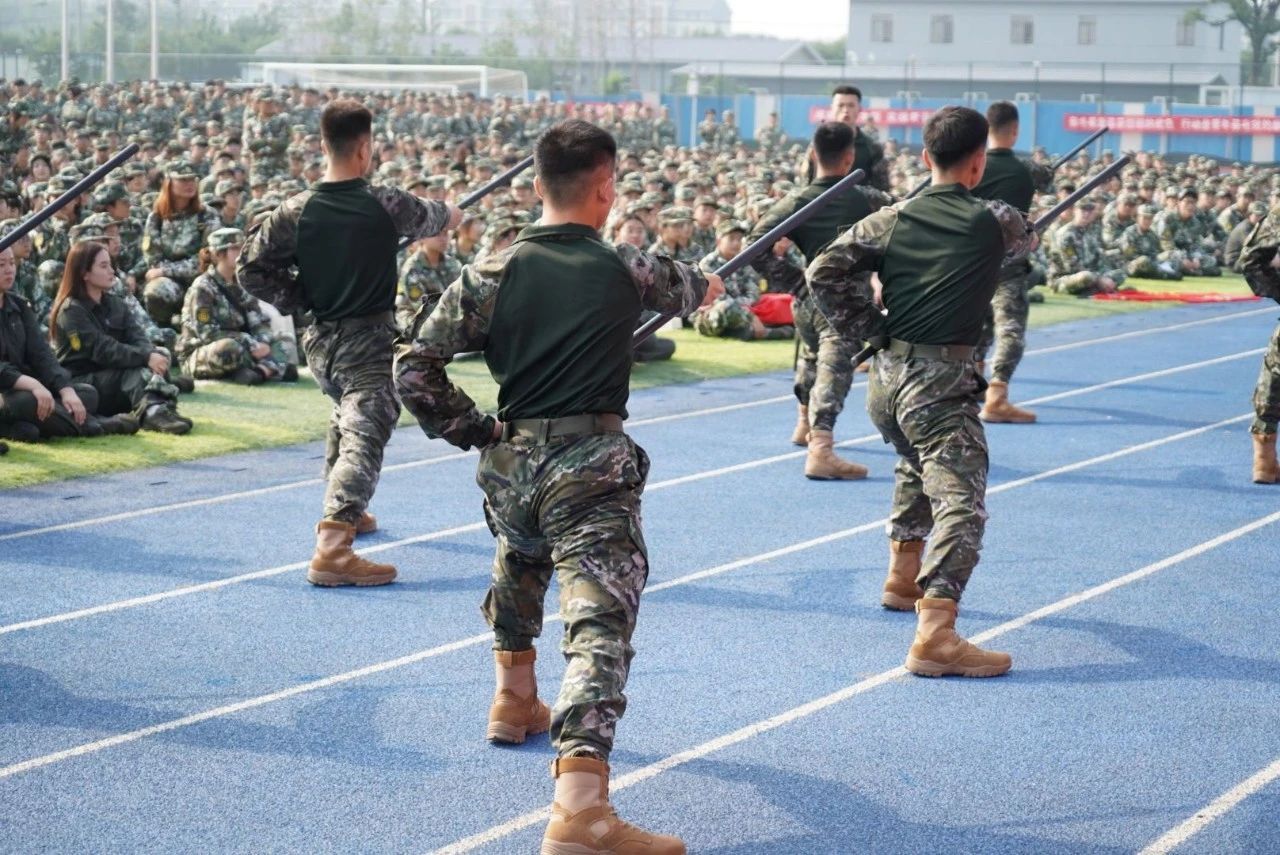 承訓(xùn)教官們身著筆挺的迷彩服,進(jìn)行了擒敵拳、戰(zhàn)術(shù)、應(yīng)急棍示范演示。教官們身姿矯健,動(dòng)作干凈利落。全場(chǎng)同學(xué)不時(shí)致以陣陣掌聲。