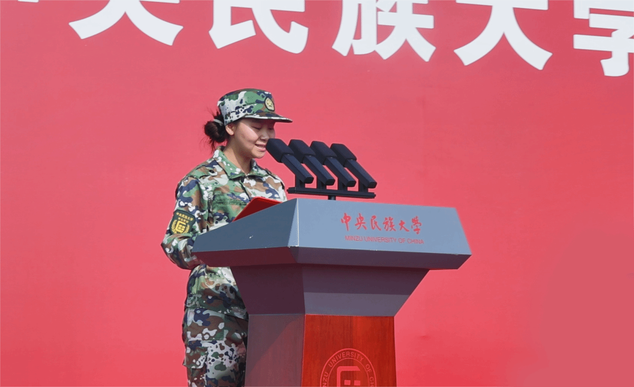中國(guó)少數(shù)民族語(yǔ)言文學(xué)學(xué)院張雅慧作為參訓(xùn)學(xué)生代表發(fā)言,她號(hào)召同學(xué)們?cè)谲娪?xùn)中強(qiáng)身健體、磨練意志,發(fā)揚(yáng)武警官兵光榮傳統(tǒng),鍛造堅(jiān)強(qiáng)意志,錘煉過(guò)硬作風(fēng),以實(shí)際行動(dòng)在嚴(yán)格的訓(xùn)練中展現(xiàn)出民大人的精神風(fēng)貌。