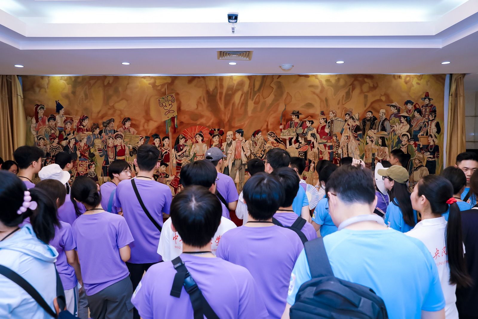 當日下午,兩地青年學子一同游覽中央民族大學-海淀校區,參觀民族文化博物館及圖書館,感受民大秀麗風景的同時領略中華民族的多民族文化魅力;考察察成員們與中央民族大學的學生們開展了兩地學生交流會,以分組交流的形式,讓兩地青年進行了深入的對話和交流。