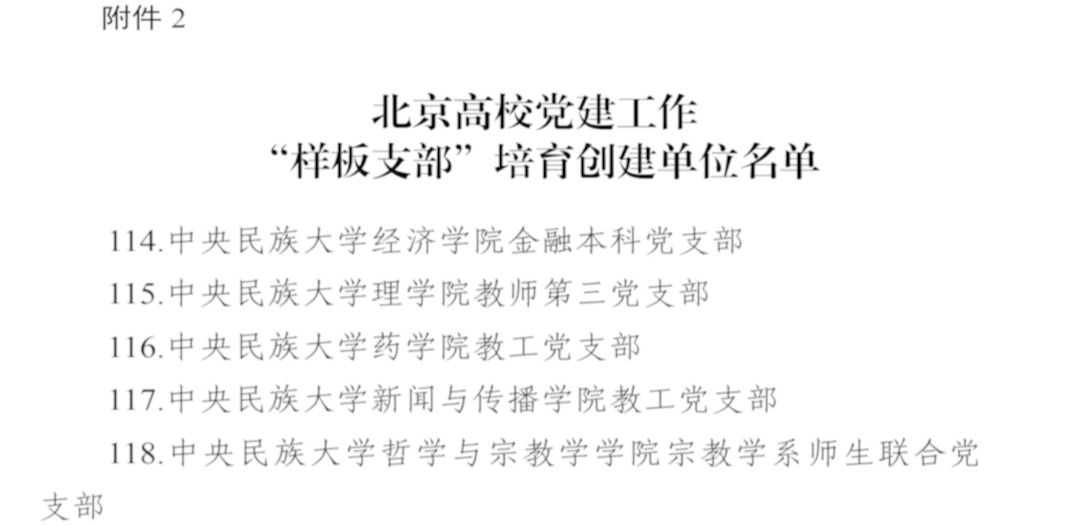 新聞網(wǎng)訊 近日,北京市委教育工委公布了北京高校黨建工作“標(biāo)桿院系”“樣板支部”“黨建引領(lǐng)實(shí)踐創(chuàng)新示范項(xiàng)目”培育創(chuàng)建單位名單,我校共入選7項(xiàng)。其中,歷史文化學(xué)院黨委、經(jīng)濟(jì)學(xué)院黨委入選“標(biāo)桿院系”,經(jīng)濟(jì)學(xué)院金融本科黨支部、理學(xué)院教師第三黨支部、藥學(xué)院教工黨支部、新聞與傳播學(xué)院教工黨支部、哲學(xué)與宗教學(xué)學(xué)院宗教學(xué)系師生聯(lián)合黨支部等5個(gè)黨支部入選“樣板支部”。