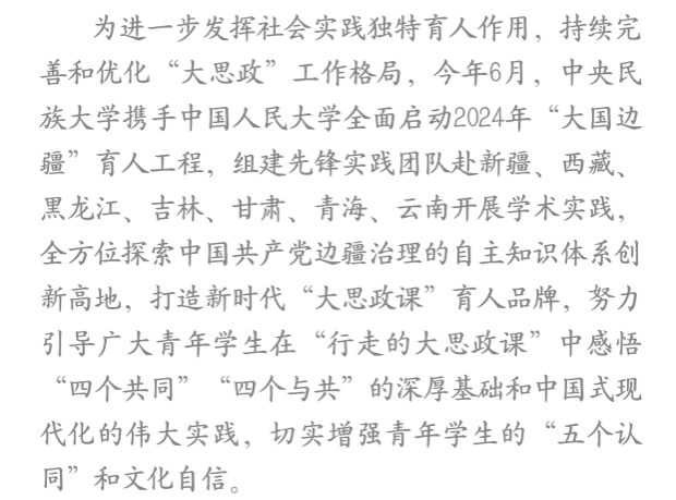 社區(qū)是鑄牢中華民族共同體意識(shí)的基礎(chǔ)單元,是各族群眾生產(chǎn)生活與交往交流交融的共同場所,是興邊富民、興邊固邊的具體實(shí)踐場域,實(shí)踐團(tuán)考察邊疆城鄉(xiāng)基層社區(qū)建設(shè)與發(fā)展經(jīng)驗(yàn),感悟中國新時(shí)代治疆方略,探析興邊固邊、鑄牢中華民族共同體意識(shí)的延邊經(jīng)驗(yàn),用學(xué)術(shù)語言講好新時(shí)代邊疆故事,更好揭示邊疆地區(qū)城鄉(xiāng)基層社區(qū)落實(shí)和推進(jìn)鑄牢中華民族共同體意識(shí)的路徑、機(jī)制,促進(jìn)邊疆地區(qū)和各民族共同發(fā)展繁榮進(jìn)步。
