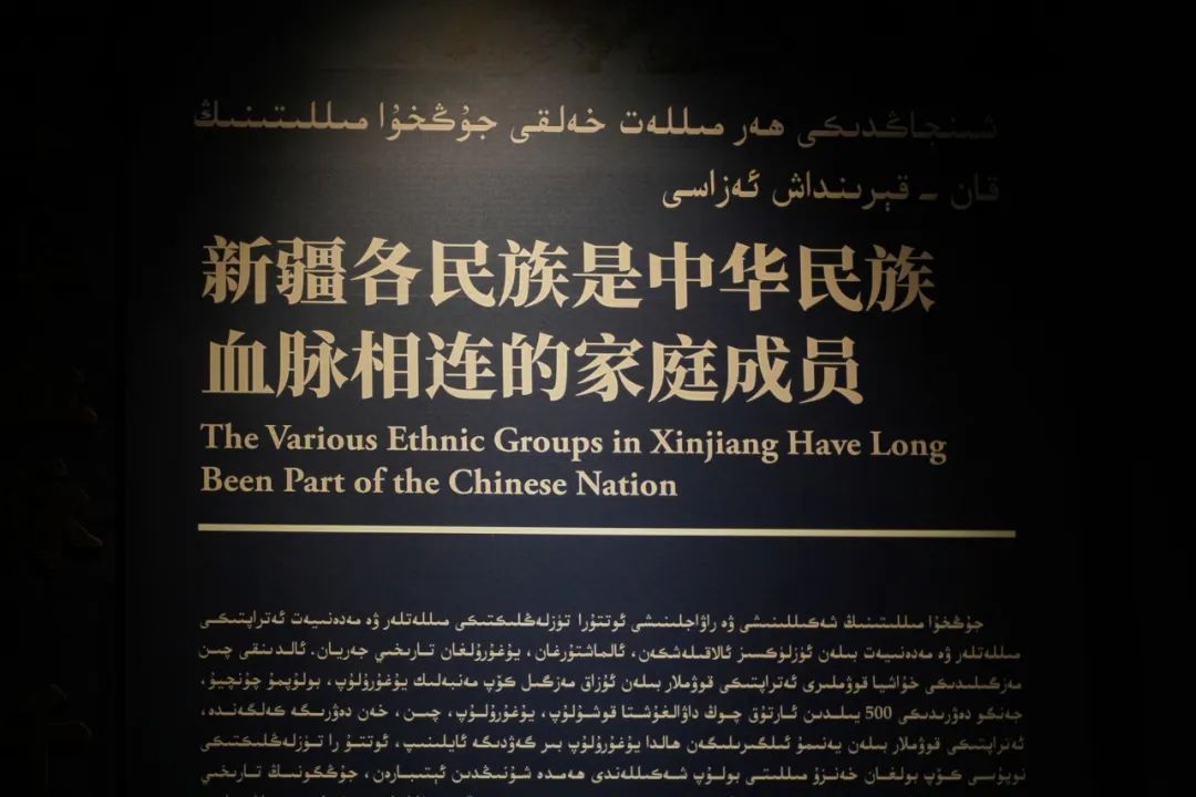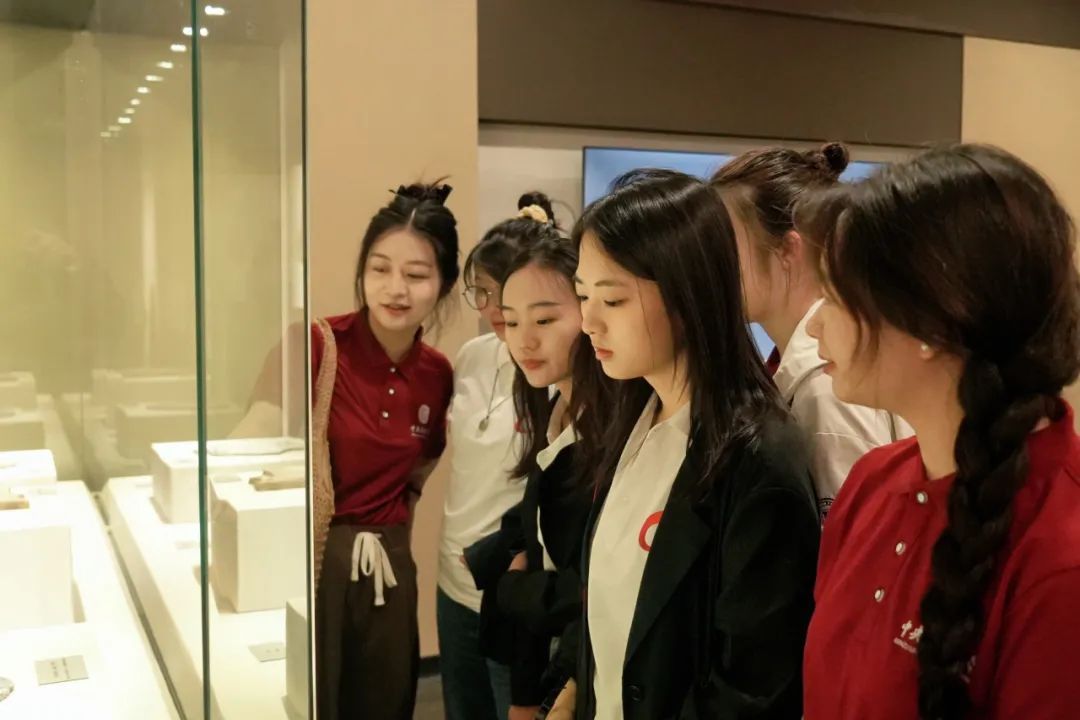 在喀什博物館,實踐團成員們結合背景材料與研究興趣,向大家重點分享了四個文物,分別是西周的箜篌、漢代“五星出東方利中國”織錦、北朝的三耳壓花陶罐和抗日戰爭時期的“繪象中華產業圖”棉毛毯。通過沉浸式參觀與參與式分享,成員們在博物館體悟文字與物質承載多元一體的中華文明,初步感受到喀什地區各類文明符號交融薈萃。