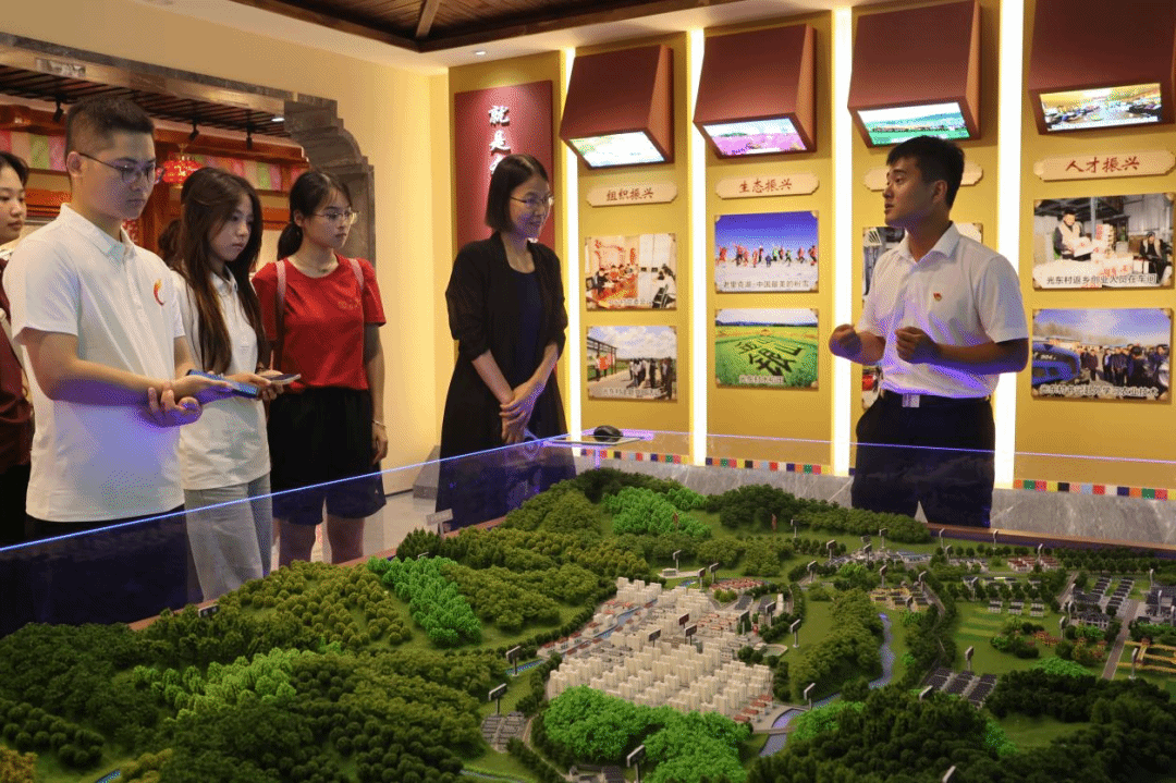 在紅日村,實(shí)踐團(tuán)學(xué)習(xí)“黨建引領(lǐng)+紅色教育+民俗旅游+生態(tài)旅游”的發(fā)展之路。