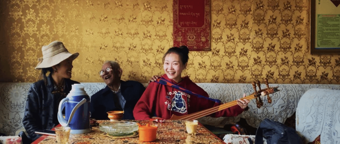 ▲在拉孜一個(gè)茶館,陌生的老爺爺聽(tīng)陳嘉瑋彈琴,初次見(jiàn)面,也如老友重逢。(圖片來(lái)源:道中華)