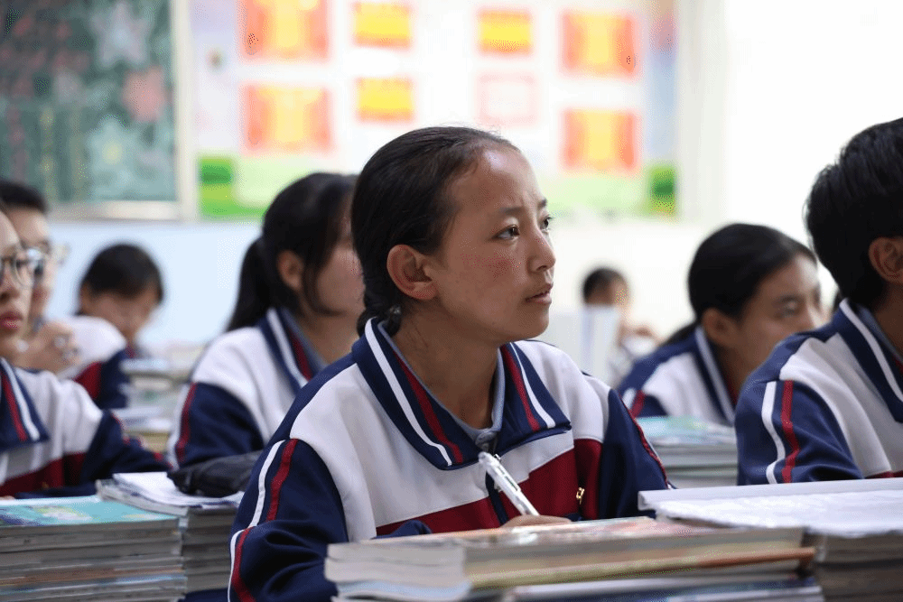 ▲果洛西寧民族中學(xué)學(xué)生尼東拉毛在上課(圖片來(lái)源:新華社)