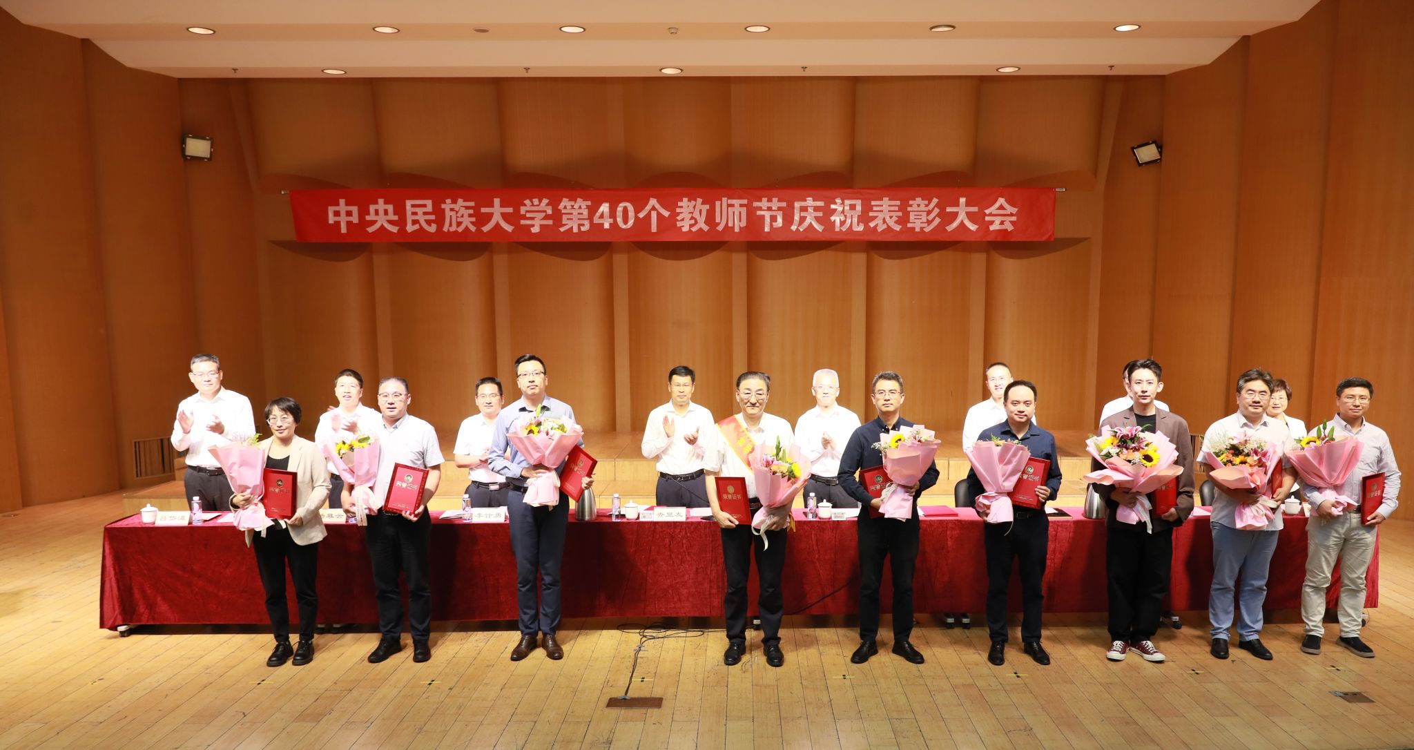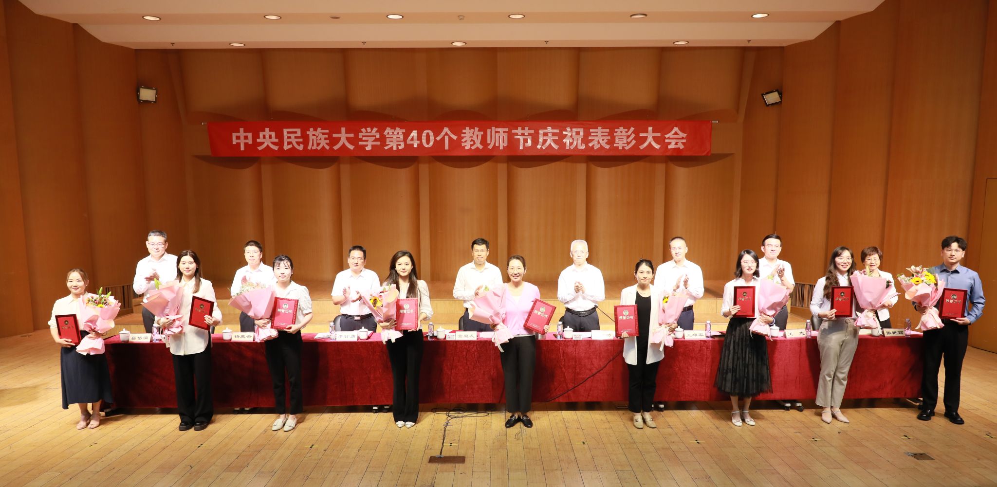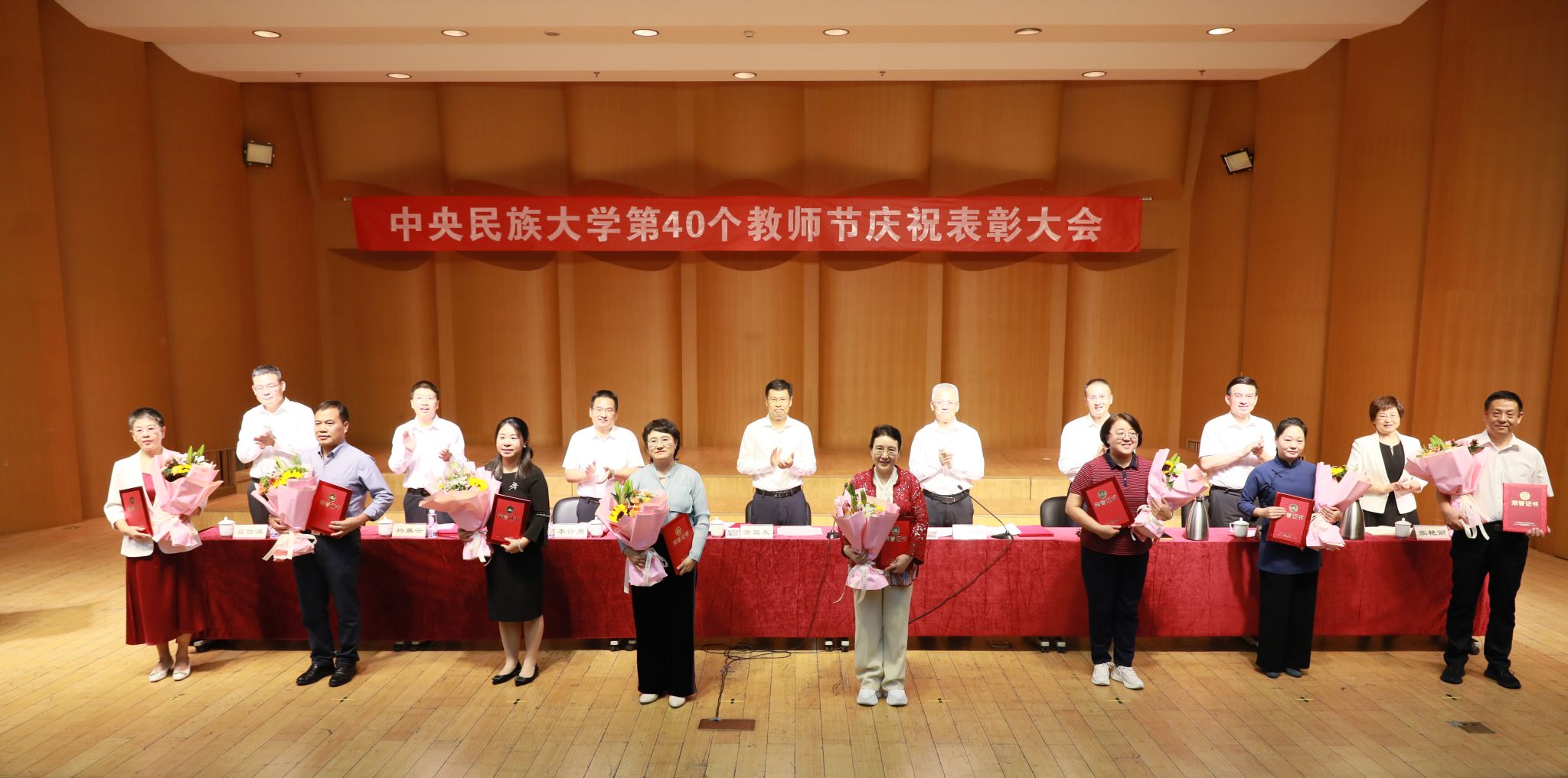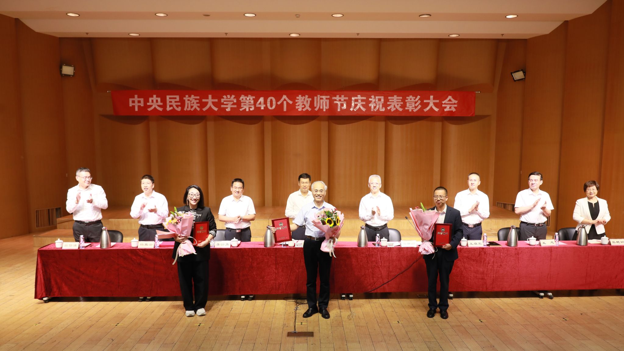 會上,黨委副書記、副校長李計勇宣讀了《中央民族大學關于表彰2023-2024年度獲得黨建人才管理榮譽稱號和教學科研獎項的集體和個人的決定》,黨委常委、副校長楊慕云宣讀了《中央民族大學關于對2024年從事教育工作滿30年教職工進行表彰的決定》。與會校領導為受表彰的集體和個人頒發(fā)榮譽證書,學生代表為老師們獻上鮮花。