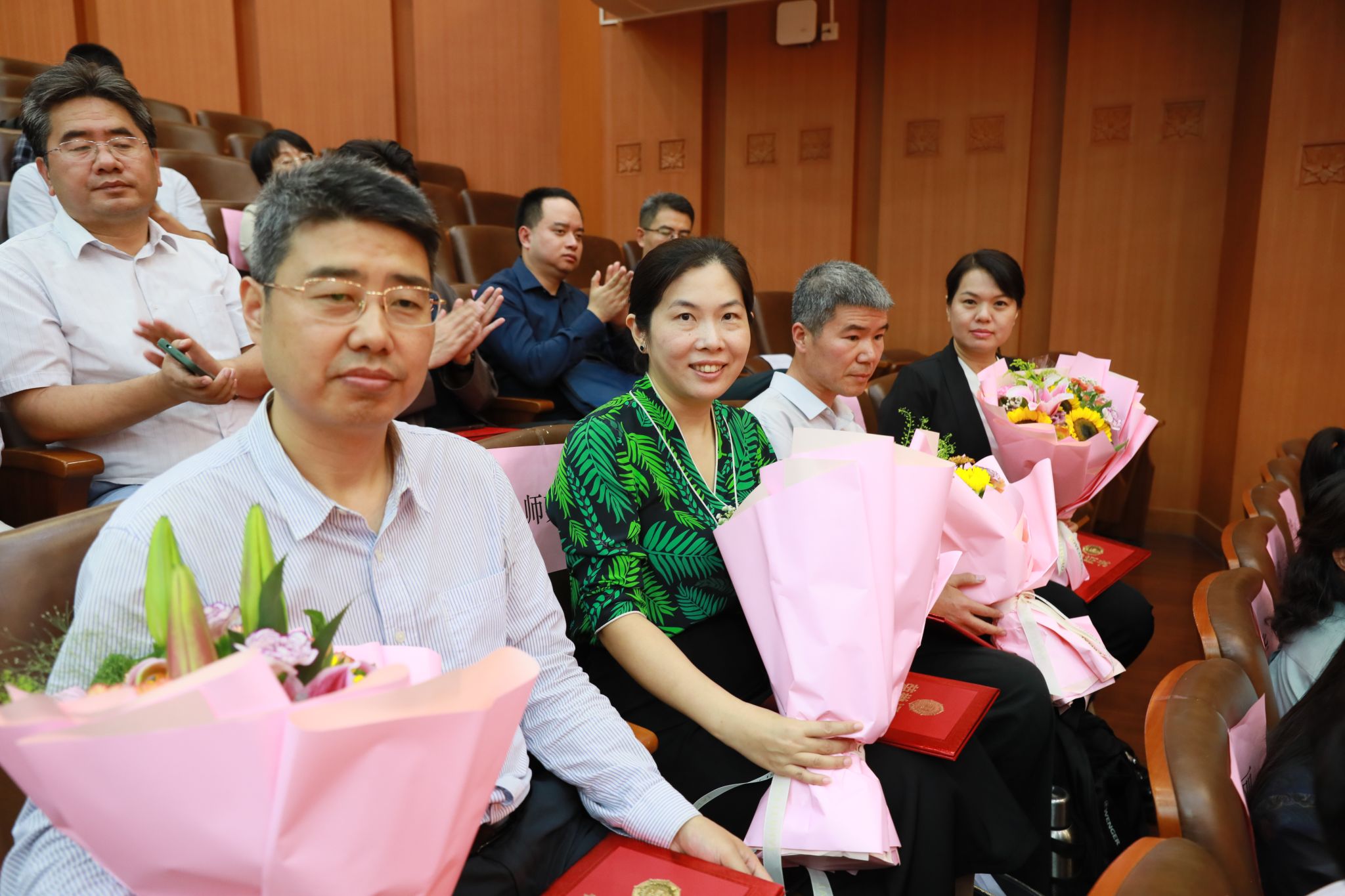 獲獎教師代表、哲學與宗教學學院王海鋒教授表示,要大力踐行教育家精神,準確把握時代變革對大學教育的挑戰(zhàn),繼承民大老教師的優(yōu)良育人傳統(tǒng),做新時代的大學好老師。從事教育工作滿30年教職工代表、信息工程學院趙小兵教授分享了自己從事教育工作滿30年的感受,表示將不忘初衷、勤奮耕耘,繼續(xù)為黨的教育事業(yè)和學校新的騰飛貢獻力量。美術學院學生第二黨支部孫茜作為學生代表,向所有老師致以節(jié)日問候和祝福,暢談了作為全國樣板黨支部堅守文藝為人民創(chuàng)作根本宗旨的生動實踐,并表示將堅定不移聽黨話、跟黨走,在推進強國建設、民族復興偉業(yè)中展現(xiàn)青春作為、彰顯青春風采、貢獻青春力量。