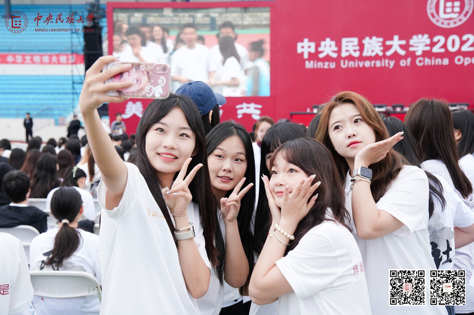 初秋微雨的民大校園,碧波椰林的海南校區,閃耀著自信光芒的“新民大人”匯聚一堂。開學典禮前,音樂學院同學奏響《草原圖騰》,沉浸式演繹了各民族交往交流交融的生動場景。“請黨放心,強國有我!”大學生藝術團群誦《奮斗的一代》,與新生共勉一代代民大人的精神追求。“舞”出圈的舞蹈學院姜鐵紅院長與學生一起豪邁共《奔騰》,舉手投足間為新生注入“勇闖天涯”的青春斗志。