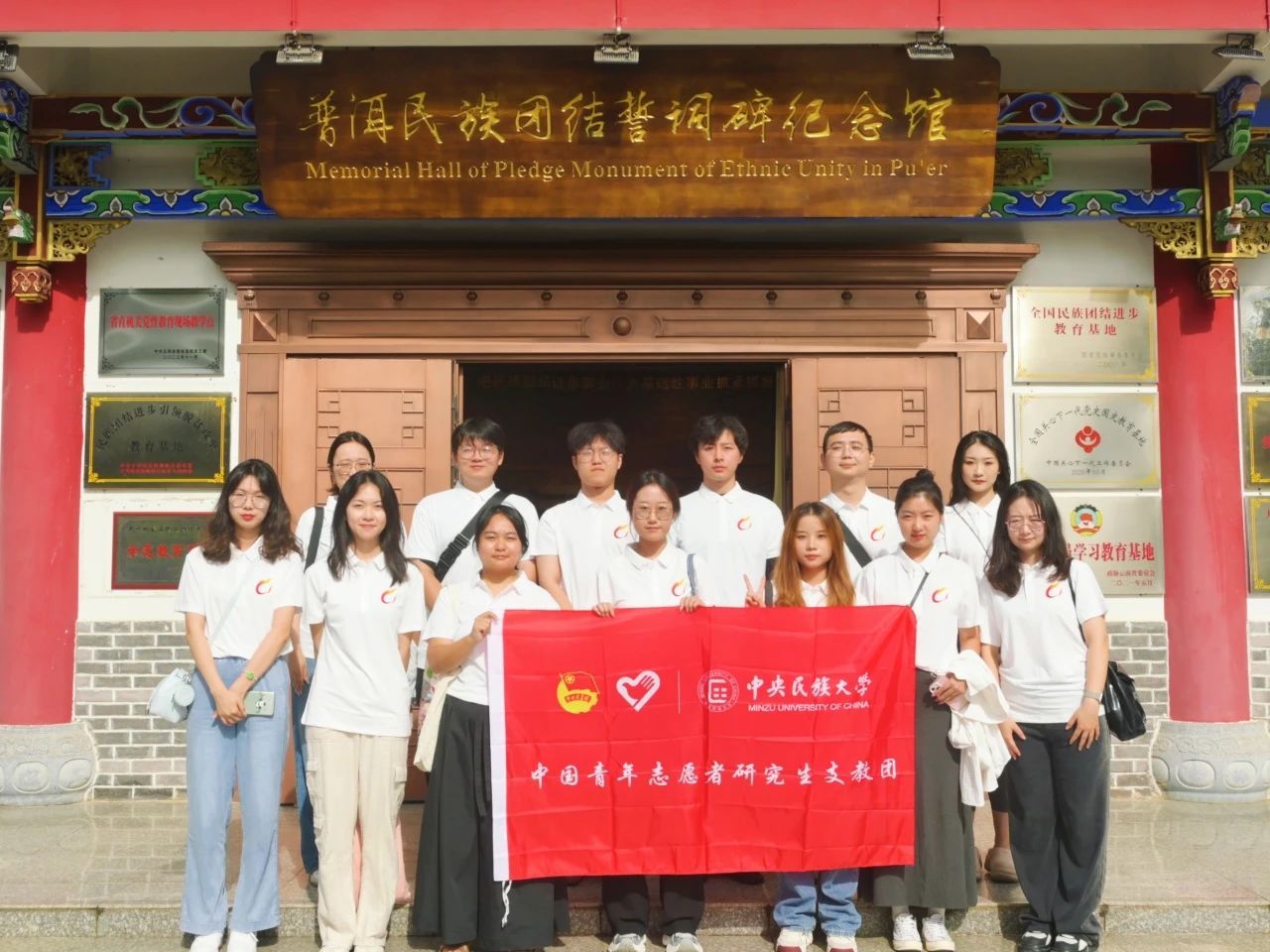 今年暑期,中央民族大學第26屆研支團云南分團的15位志愿者已前往普洱市寧洱哈尼族彝族自治縣,實地瞻仰民族團結誓詞碑,考察邊疆地區經濟社會發展所取得的歷史性成就,感悟各民族交往交流交融的生動實踐。