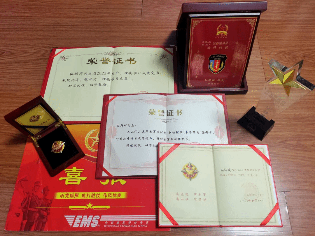 像是冥冥之中命運在安排,2020年12月,和朋友參觀國家軍事博物館,我站在“香港駐軍模范特戰連”的錦旗面前深深凝望。2023年2月,我走進香港駐軍模范特戰連的榮譽室,滿目陳列的榮譽,深深震撼著我的靈魂。這時,我已經成為了一名守衛香港繁榮穩定的特戰女兵。