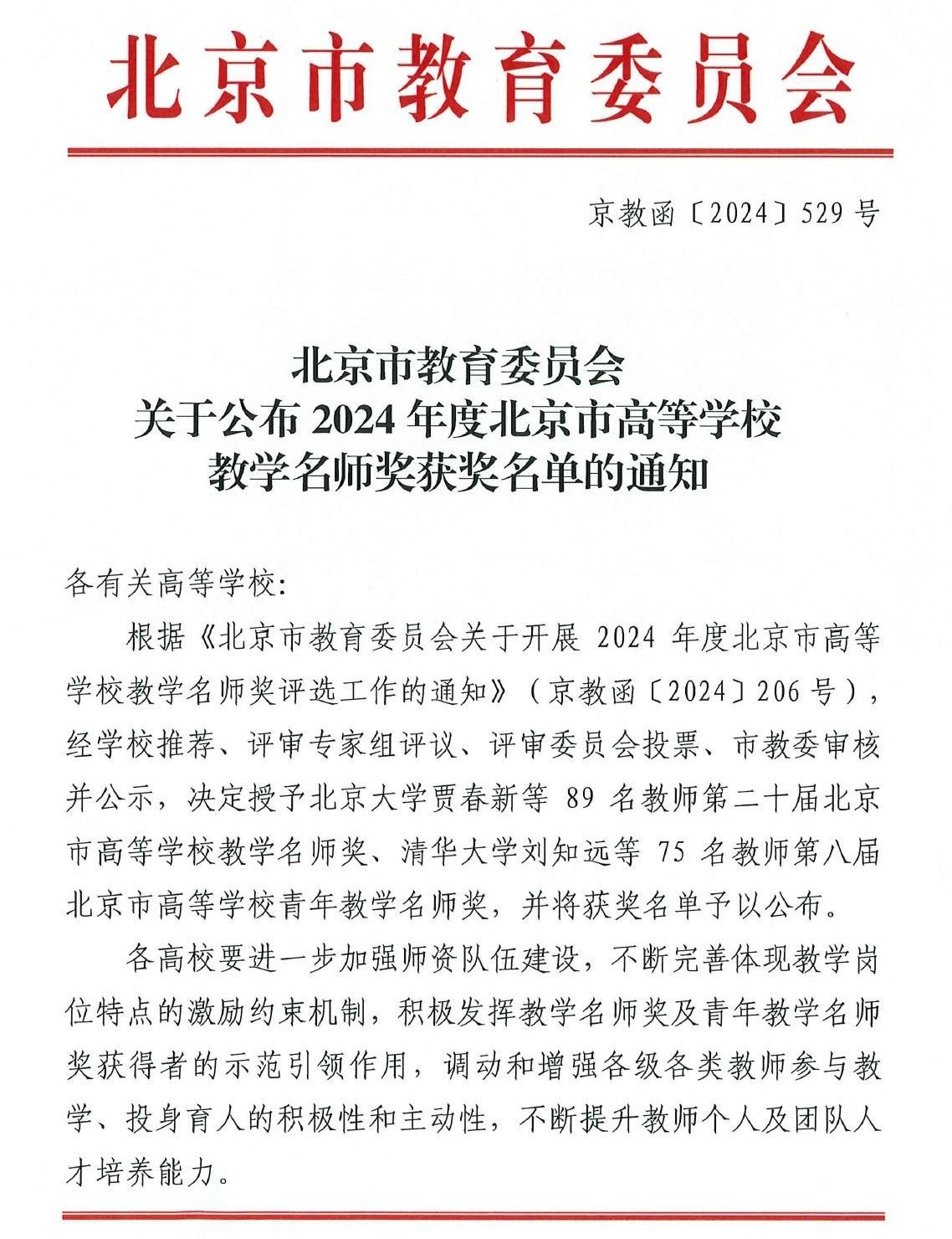 北京市教學(xué)名師獎(jiǎng)自2003年開始評(píng)選,青年教學(xué)名師獎(jiǎng)自2017年首次評(píng)選,旨在發(fā)揮教學(xué)名師的示范引領(lǐng)作用,調(diào)動(dòng)和增強(qiáng)各級(jí)各類教師參與教學(xué)、投身育人的積極性和主動(dòng)性,不斷提升教師個(gè)人及團(tuán)隊(duì)人才培養(yǎng)能力。