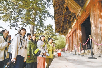 素有“中國第一國寶”美譽的唐代木結構建筑佛光寺東大殿古樸肅穆,氣勢恢宏。這座建于唐大中十一年(公元857年)的大殿距今已有一千多年歷史,是我國現(xiàn)存規(guī)模最大、保存最為完好的唐代木結構建筑。走進殿內,中國史專業(yè)學生徐暢連連感嘆:“這一刻仿佛‘穿越’到了千年前,讀過的很多文獻瞬間活了起來!”親眼見到不同時期的古跡,可以非常直觀地感受到歷史的跨度。