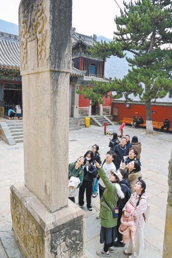 深入五臺山建筑群,多民族語言文字碑刻林立。大家紛紛調動日常所學知識辨認古老的文字——它們記錄著包括建筑、文藝、經(jīng)濟等多方面的信息,是歷史上各民族交往、交流、交融的重要見證。