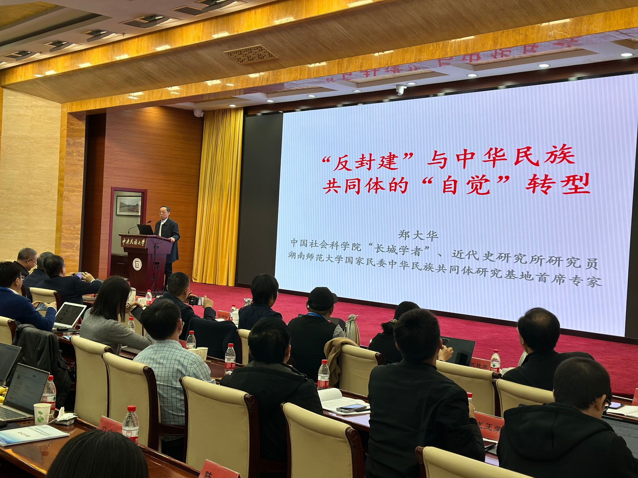 中央民族大學黨委書記查顯友,中央民族大學黨委副書記、校長、中國民族學學會會長強世功,國家民族事務委員會理論研究司副司長張世保,中央民族大學黨委常委、副校長石亞洲,中共中央編譯局原秘書長、中央馬克思主義理論研究和建設工程首席專家、清華大學特聘教授楊金海,政協第十三屆全國委員會委員、中國社會科學院近代史研究所研究員、中華民族團結進步協會專家委員會主任委員鄭大華,政協第十四屆全國委員會委員、中國社會科學院民族學與人類學研究所研究員,中國民族學學會副會長張繼焦等出席。來自中央黨校(國家行政學院)、中國社會科學院、清華大學、浙江大學、蘭州大學、云南大學、中央民族干部學院等80余所高校和科研院所的140多位專家學者參加會議。開幕式由中央民族大學黨委常委、民族學與社會學學院院長,中國民族學學會常務副會長關凱主持。