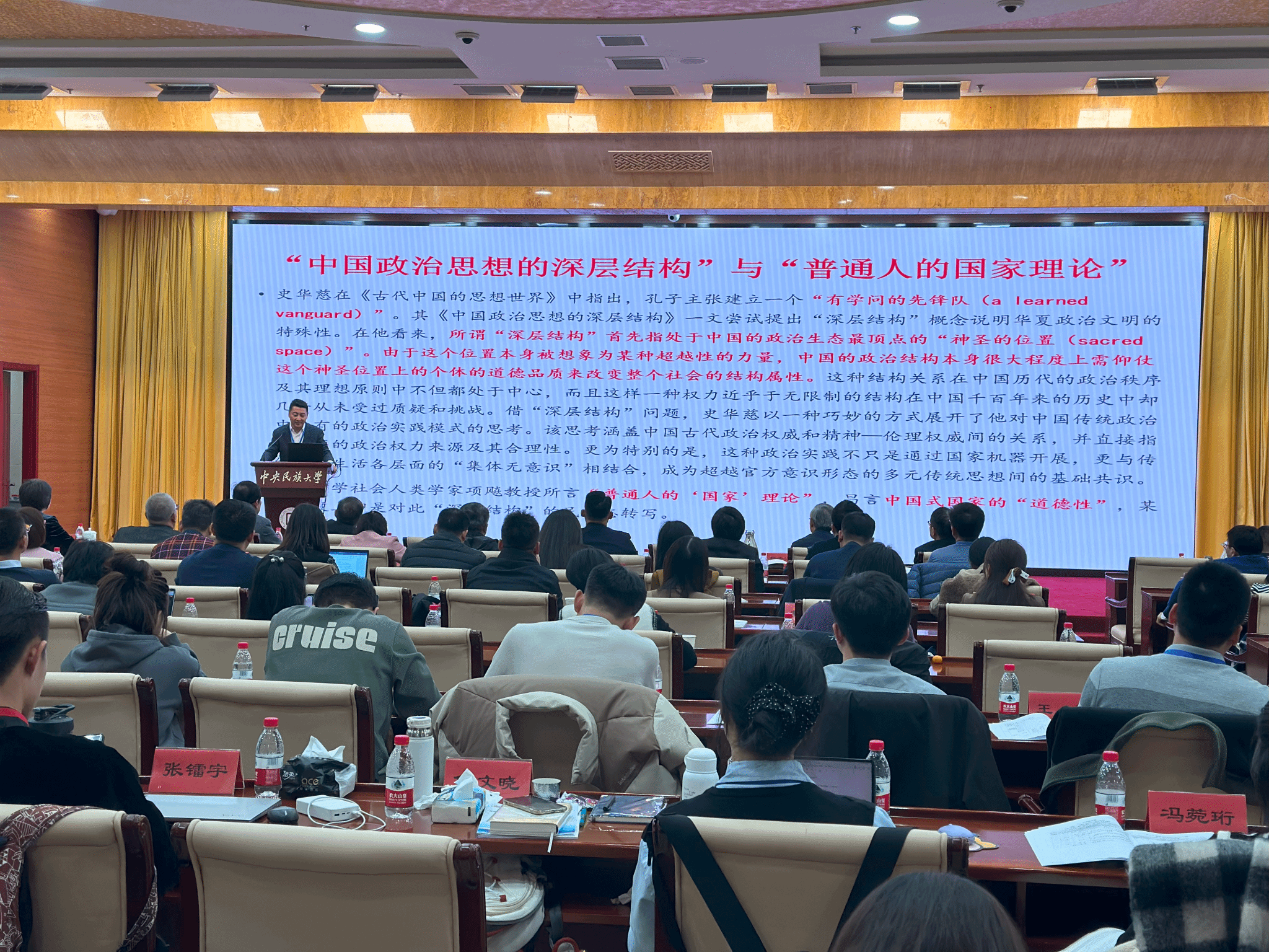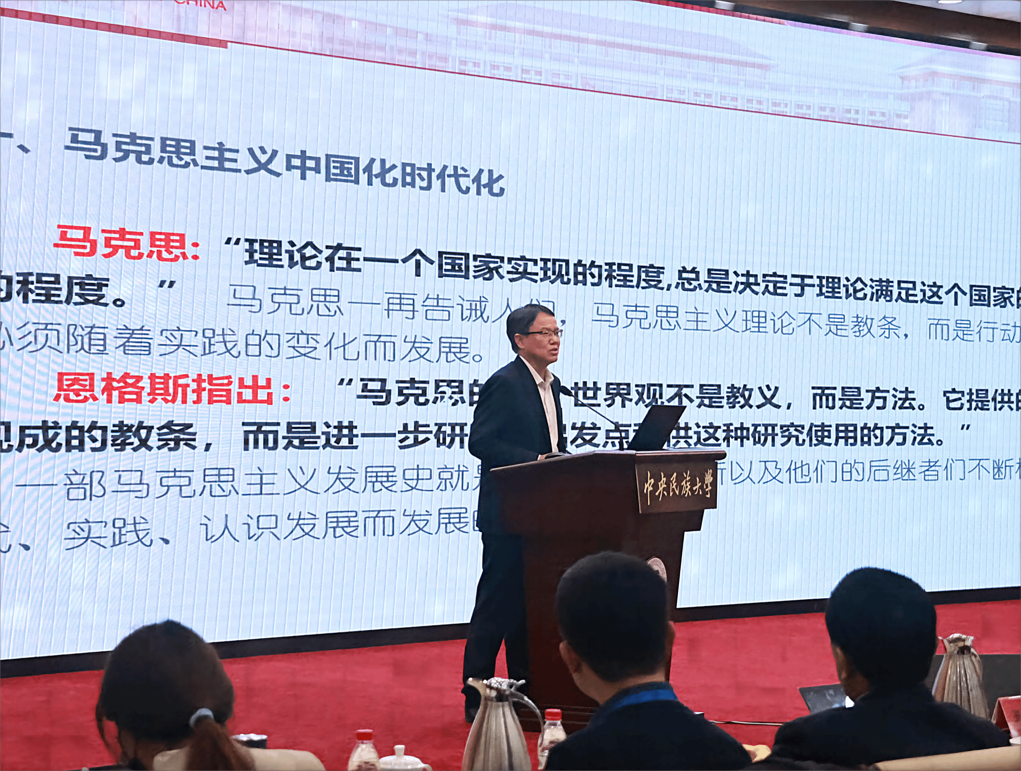 在“中國民族學學會高層論壇”“推進馬克思主義民族理論中國化時代化”兩個分論壇環節,14位專家學者作主旨發言,60余名學者圍繞“馬克思主義與鑄牢中華民族共同體意識”“跨界、流動與共同體建設”“馬克思主義民族理論與政策學科建設”“推進中華民族共同體建設”“構建中華民族共同體理論體系”“馬克思主義民族理論與中華優秀傳統文化相結合”等議題開展專題研討,近50名青年學者、優秀碩博研究生代表分4組進行熱烈討論。