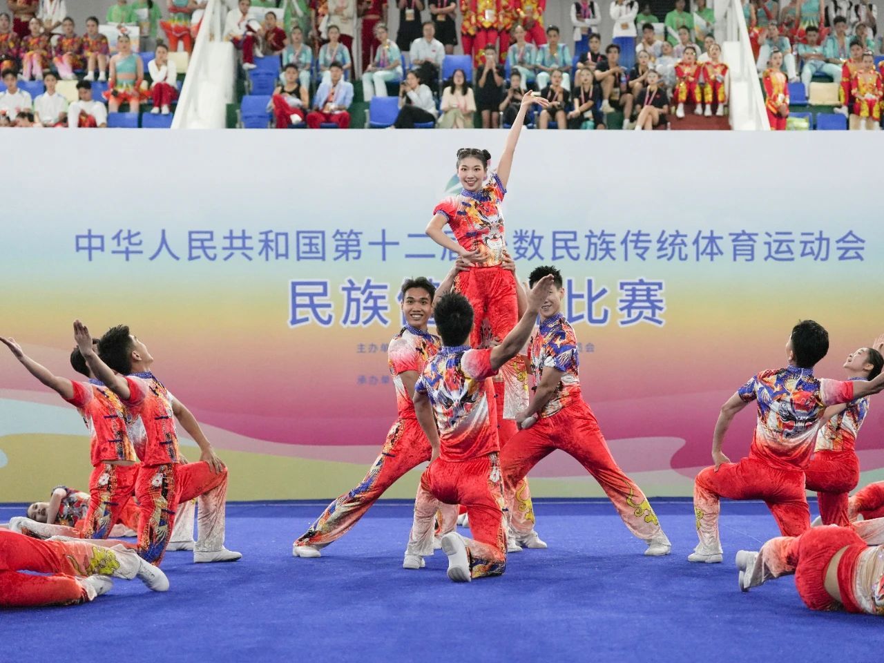 新聞網訊 11月27日,第十二屆全國少數民族傳統體育運動會民族健身操比賽首個獎項產生。由中央民族大學學子組成的北京市代表團兩輪成績均高居榜首,最終以總分18.806分獲得民族健身操規定套路一等獎。