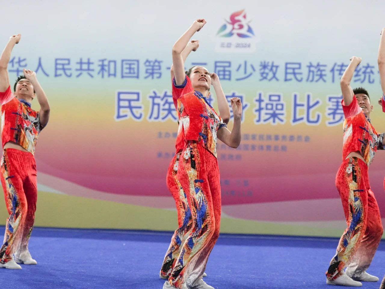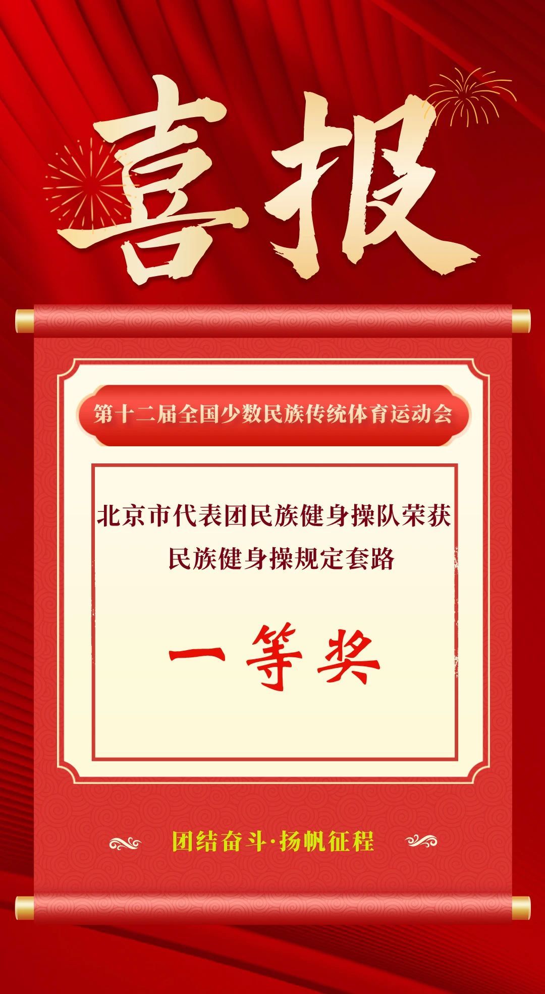 在本屆運動會中,北京市代表團共計348人,中央民族大學共報送領隊、教練員、運動員和裁判員79名,參與民族健身操、木球、陀螺、龍舟4個競賽項目,展示各族運動員的風采和民族傳統體育運動的發展成果。此前,龍舟隊已獲得男子小龍舟200米三等獎、女子小龍舟200米三等獎、女子小龍舟500米三等獎、小龍舟混合組200米三等獎、標準龍舟混合組500米三等獎。期待他們屢創佳績、捷報頻傳!