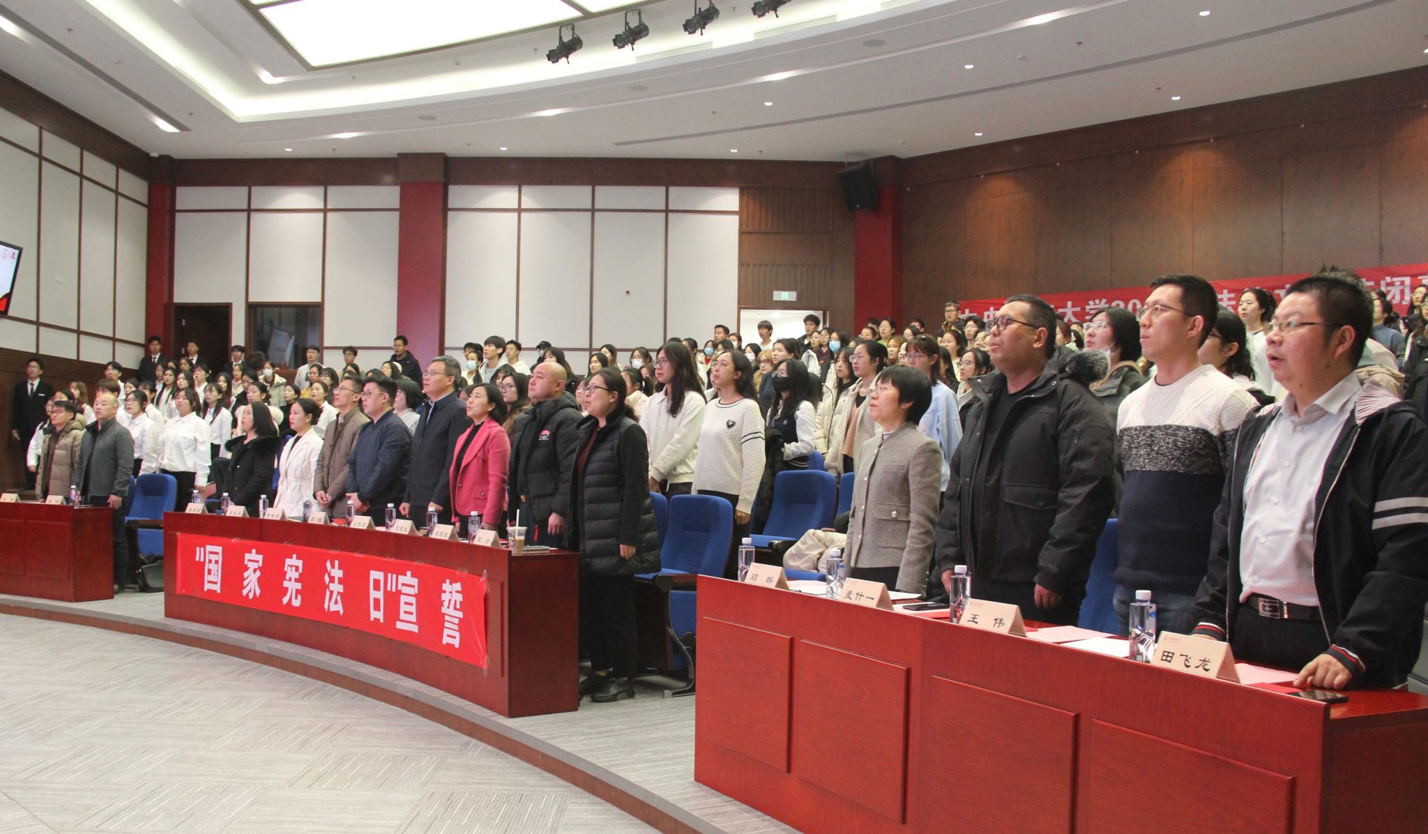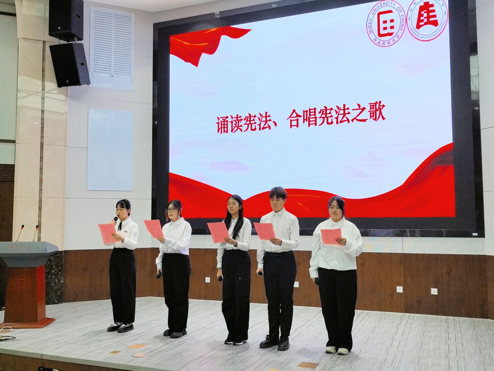 會上,全體師生進行憲法宣誓,學生代表誦讀憲法、共唱憲法之歌。