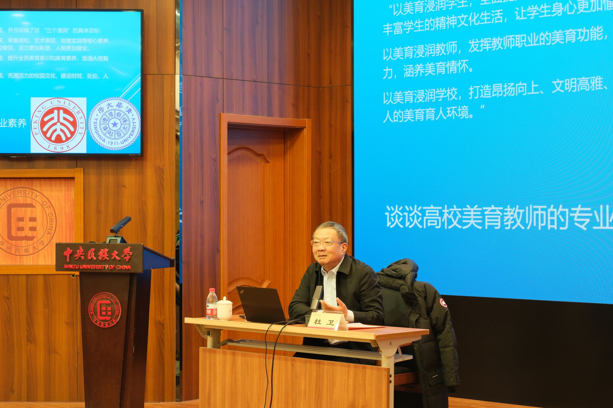 新聞網訊 12月13日,學校美育教育教學專題培訓會在海淀校區知行堂舉辦,會議特邀全國高校美育教學指導委員會副主任杜衛教授擔任主講。此次培訓會是深入貫徹習近平總書記關于加強學校美育工作的重要指示精神,落實中辦、國辦印發的《關于全面加強和改進新時代學校美育工作的意見》和《教育部關于全面實施學校美育浸潤行動的通知》等文件要求,深化我校美育教育教學改革,加強美育通識課程和師資隊伍建設的具體舉措。