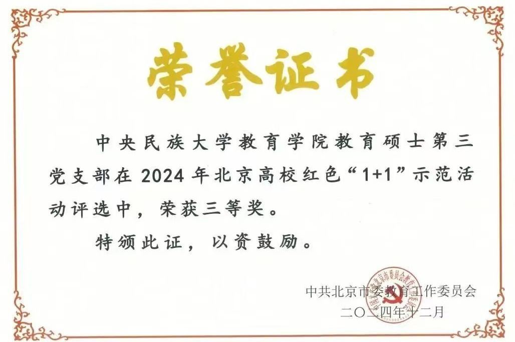 新聞網訊 為推動思政小課堂和社會大課堂有機融合,開創新時代思政教育新局面,學校持續積極組織開展紅色“1+1”黨支部共建活動。在市委教育工委組織的2024年北京高校紅色“1+1”示范活動評選展示交流活動中,經學校推薦、材料審核、專家評審、現場展示等環節,學校教育學院教育碩士第三黨支部、生命與環境科學學院生物類本科生黨支部榮獲三等獎。今天讓我們來認識教育學院教育碩士第三黨支部吧!