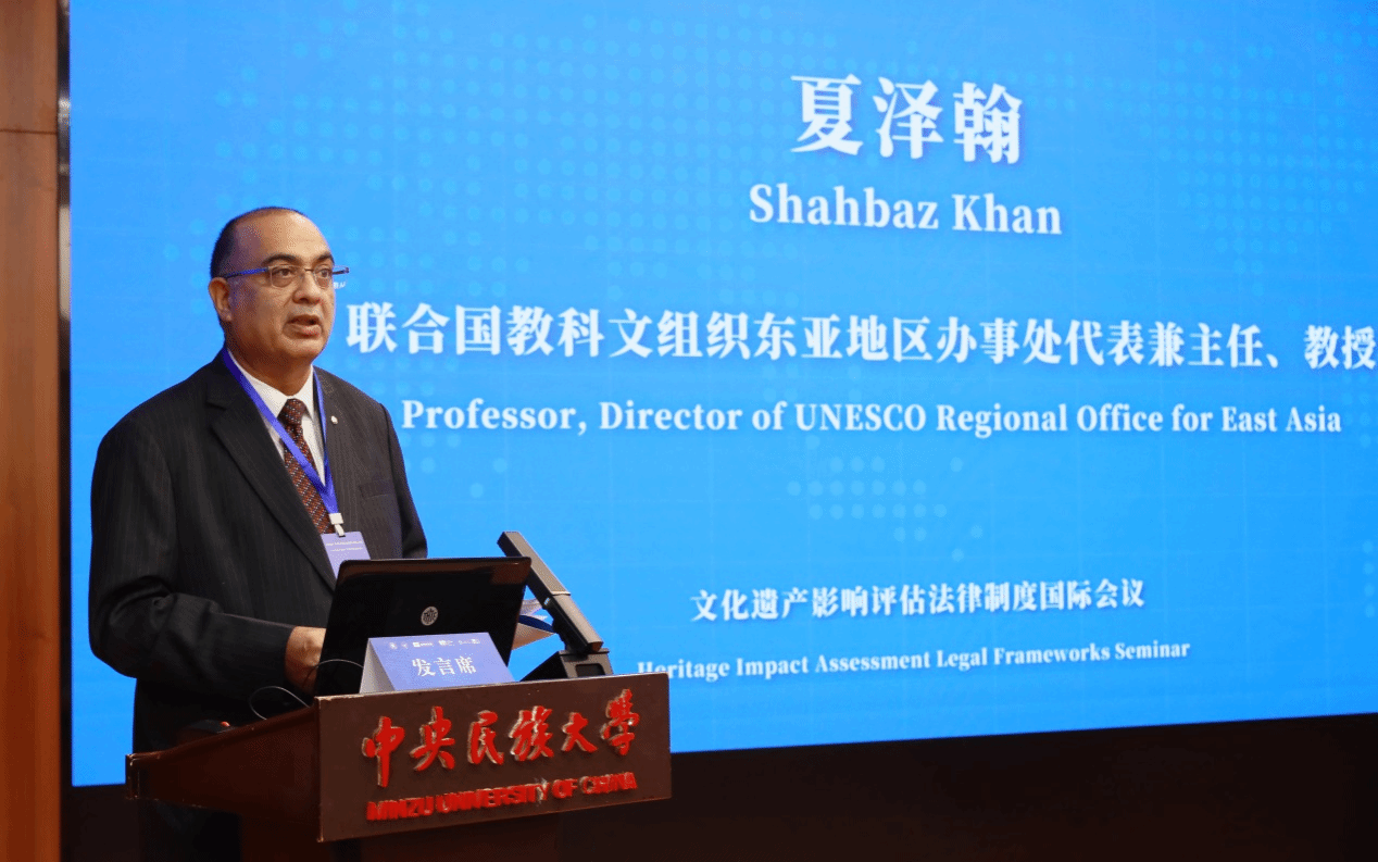 聯合國教科文組織東亞地區辦事處代表兼主任夏澤翰(Shahbaz Khan)教授指出,世界文化遺產保護面臨諸多挑戰,而本次會議能夠提供新的契機;中國人民大學法學院院長楊東教授介紹中國人民大學法學院在文化遺產法領域的成果,也認為“文化遺產影響評估”制度能夠推動文化遺產保護;聯合國教科文組織亞太地區世界遺產培訓與研究中心上海分中心主任邵甬教授同樣分享了世界遺產保護培訓與研究的豐富經驗。