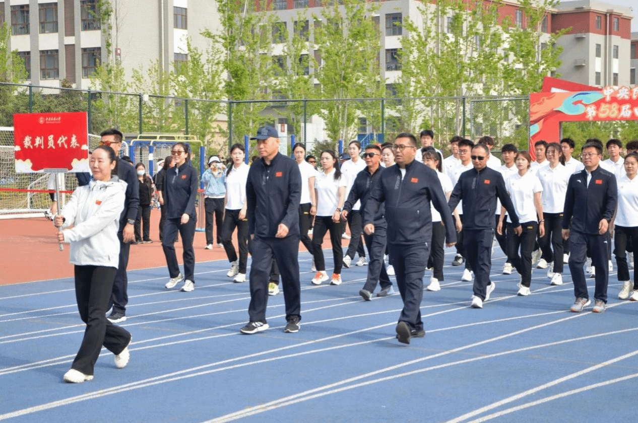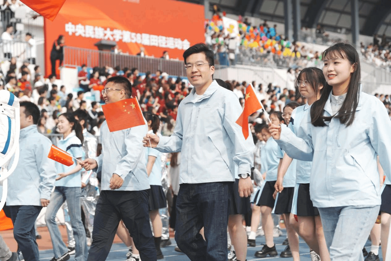本屆運動會主題為“青春飛揚 融聚民大 智創未來”。開幕式前,數百名學子在《我的祖國》音樂中演繹二十四式太極拳,動作整齊劃一、剛柔并濟。開幕式上,國旗隊、校旗隊、紅旗隊、裁判員方隊、各學院運動員代表方隊、教職工代表方隊等依次入場。他們精神抖擻,邁著矯健的步伐,伴著嘹亮的口號,以昂揚奮進的姿態列隊經過主席臺,展現出蓬勃向上的精神風貌。