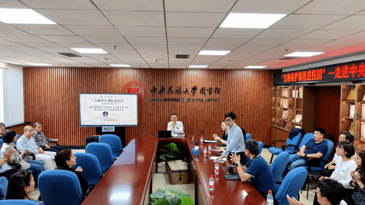 本次講座同時(shí)是古籍保護(hù)課程進(jìn)校園系列活動(dòng)之一,活動(dòng)由國家圖書館(國家古籍保護(hù)中心)、首都圖書館(北京市古籍保護(hù)中心)聯(lián)合主辦,中央民族大學(xué)圖書館承辦。活動(dòng)旨在以理論闡述與實(shí)物體驗(yàn)相結(jié)合的方式,深化師生對(duì)新時(shí)代少數(shù)民族古籍保護(hù)與創(chuàng)新的理解,明確古籍工作需立足鑄牢中華民族共同體意識(shí)主線、強(qiáng)化跨領(lǐng)域協(xié)同、推動(dòng)資源活化的發(fā)展方向,為高校傳承民族文化遺產(chǎn)、服務(wù)民族團(tuán)結(jié)進(jìn)步事業(yè)提供了啟示。