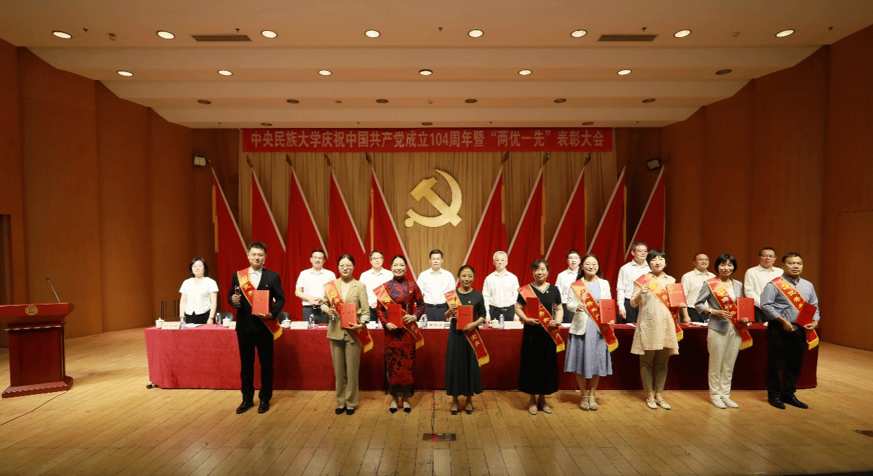 新聞網訊 6月27日,中央民族大學在海淀校區中慧樓音樂廳召開“兩優一先”表彰大會暨黨委書記講黨課。在慶祝中國共產黨成立104周年之際,學校向獲得“光榮在黨50年”紀念章的黨員同志頒發紀念章,并表彰了優秀共產黨員、優秀黨務工作者和先進基層黨組織。