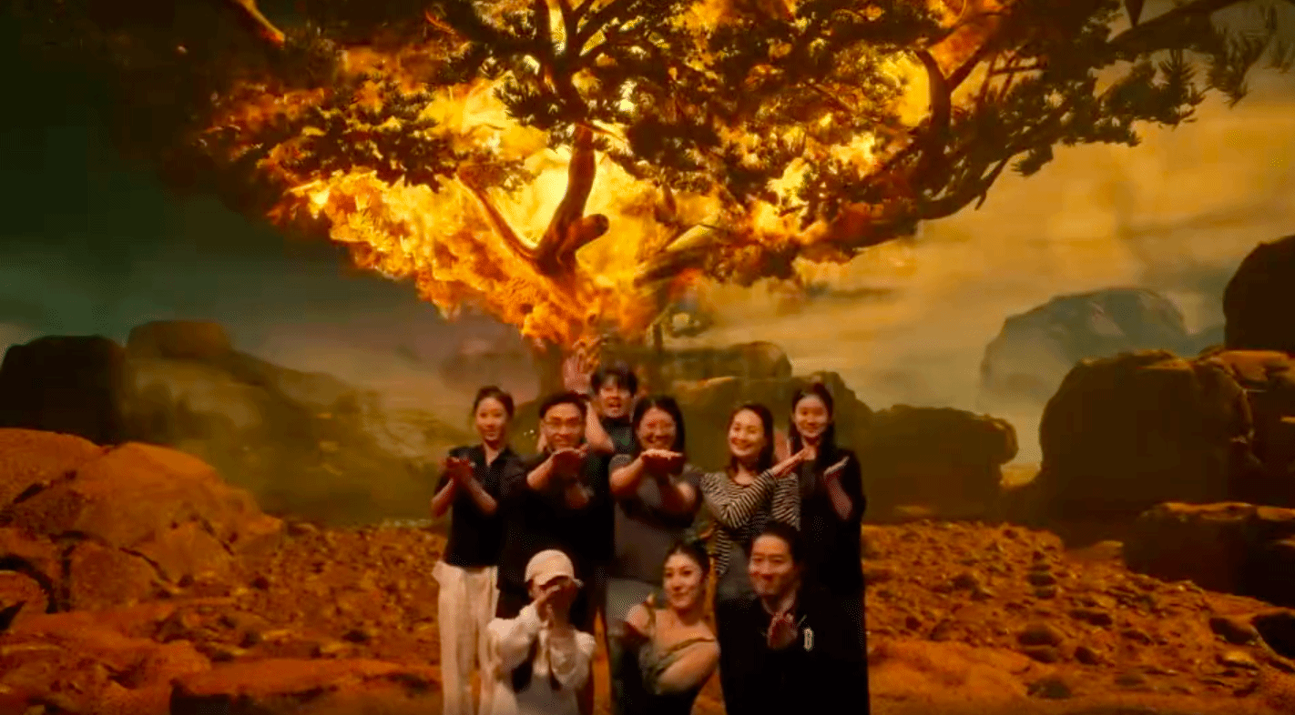 本次合作的作品《神樹與金烏》以中國古典舞為核心語言,將hecoos XR虛擬技術作為核心引擎,借助XR虛擬拍攝技術,將數字科技與傳統舞蹈表演深度融合,突破傳統舞臺邊界,構建虛實交織的東方神話世界,創造出一部充滿未來感的數字舞蹈影像作品。在虛擬與現實交織的舞臺上,舞者的每一個動作都通過XR技術實時捕捉、動態渲染,突破物理空間的限制,讓舞蹈在數字世界中無限延伸。
