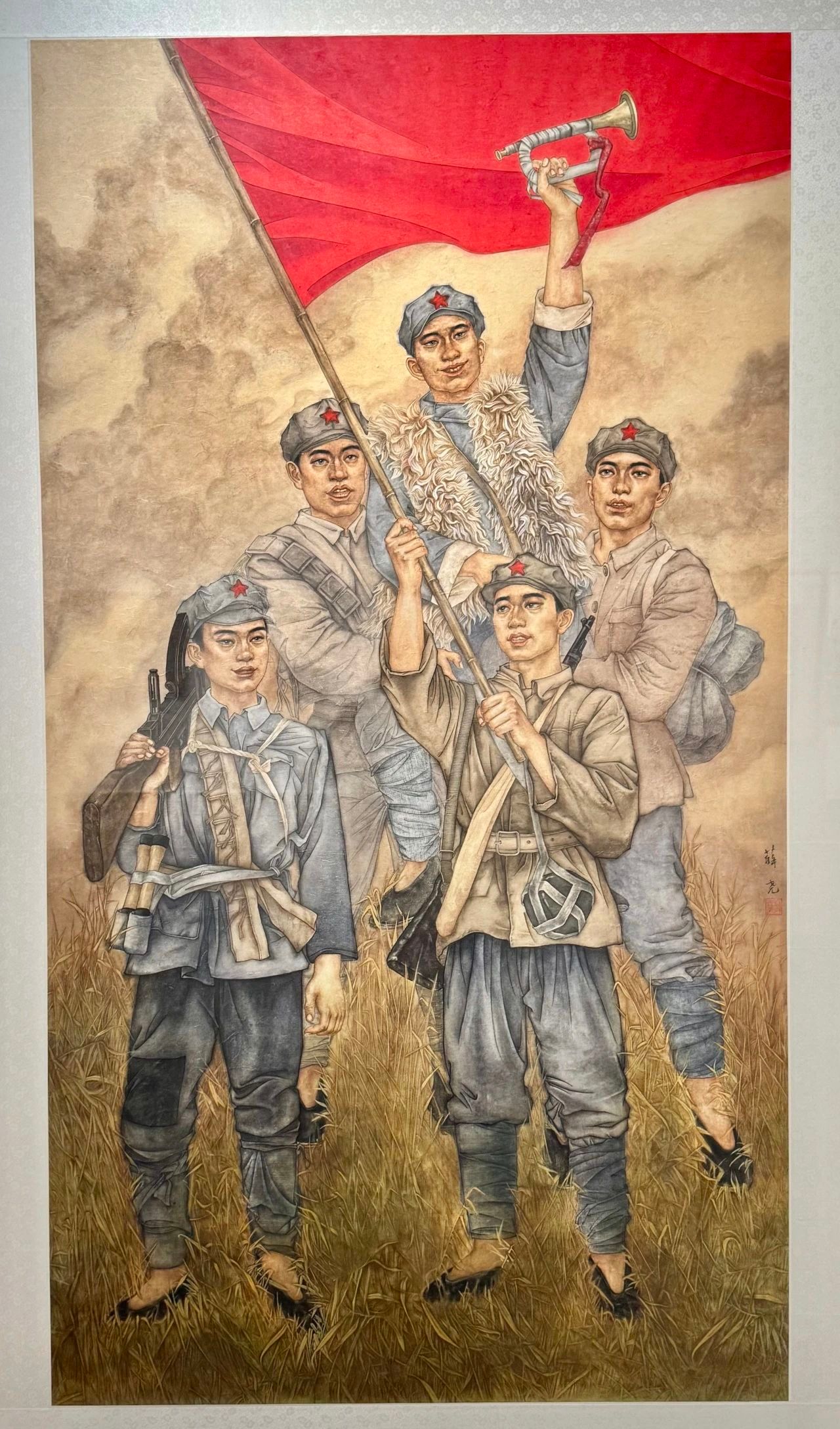 展覽以美術(shù)之名,探尋那激蕩人心的紅色記憶——一件件浸潤革命烽煙的舊物,一座座承載信仰的紅色地標(biāo),在寫生與創(chuàng)作中重?zé)ü廨x;我們聚焦鑄牢中華民族共同體意識主線,以藝術(shù)視角共情演繹——民族先輩的英姿、共有的精神圖騰,在山水人物間凝結(jié)為中華民族共同體的視覺華章;我們書寫中國式現(xiàn)代化建設(shè)的奮進(jìn)篇章,以畫筆詮釋歷久彌新的紅色精神——鄉(xiāng)村振興的壯美畫卷、九天攬月的航天豪情、校園日新的盎然生機,無不躍動著新時代的脈搏,映照著人民群眾昂揚奮進(jìn)的精神風(fēng)貌。